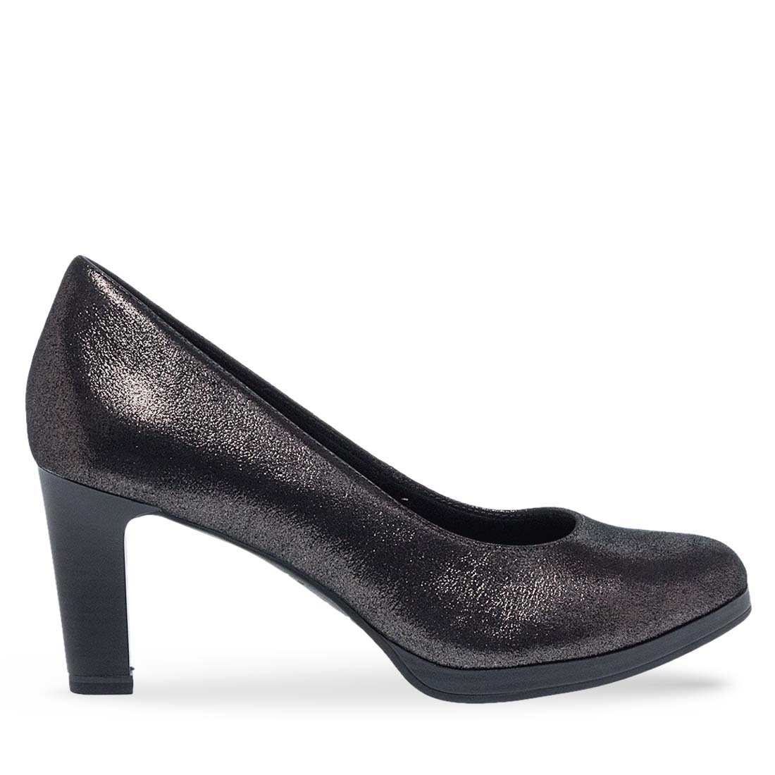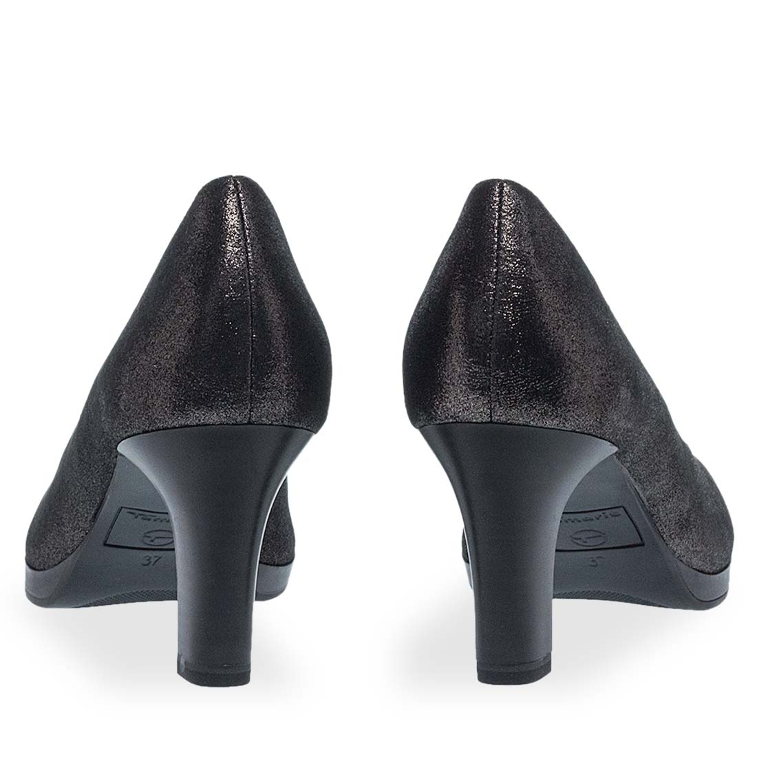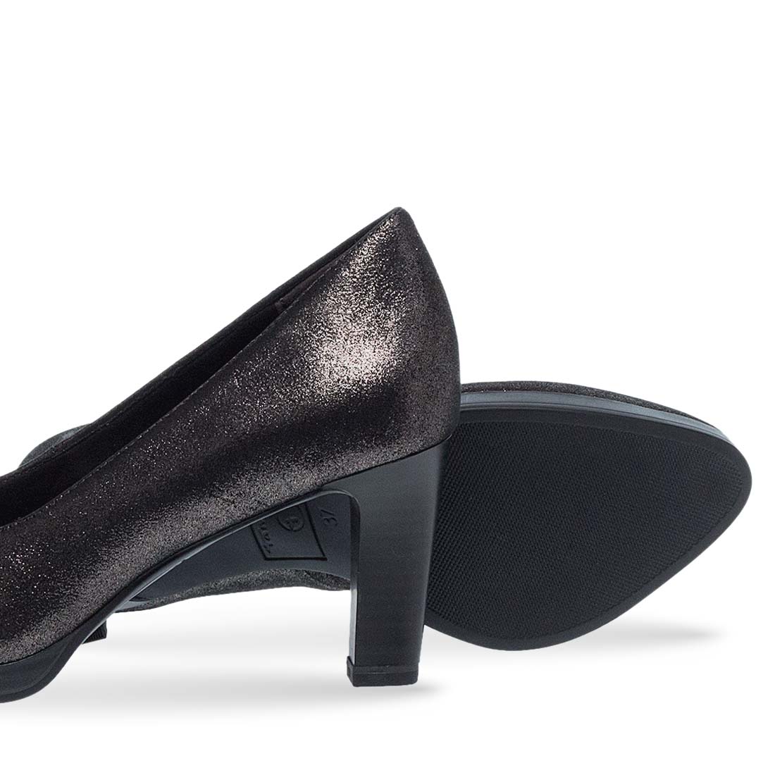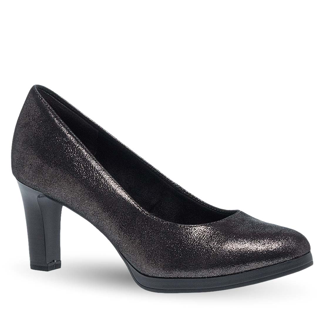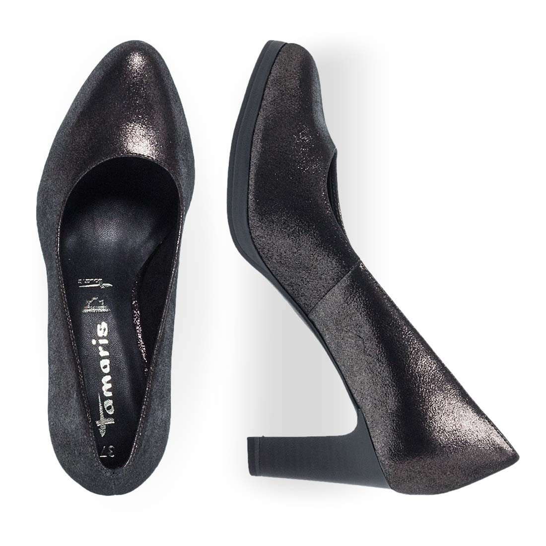 Γυναικείες δερμάτινες γόβες από το brand Tamaris. Κλασική δερμάτινη ατσαλί γυναικεία γόβα με μεσαίο τακούνι και μεταλλική λάμψη. Η γόβα αυτή είναι κατάλληλη για επαγγελματικές και επίσημες περιστάσεις.