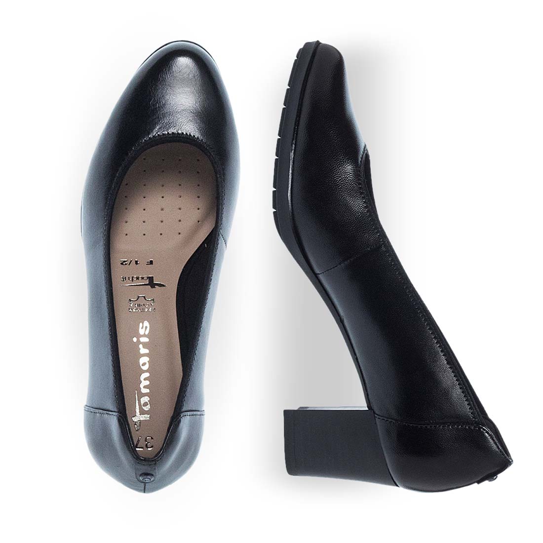 Μαύρες δερμάτινες γόβες της εταιρείας Tamaris για μοναδικές εμφανίσεις σε κάθε στιγμή της ημέρας. Διαθέτουν block τακούνι σε ιδανικό ύψος που θα αναβαθμίσει κάθε σας εμφάνιση. Σταθερή σόλα Comfort fit και αναπαυτικός πάτος .Κλασσικές δερμάτινες γόβες Tamaris με στρογγυλή μύτη στο μπροστά μέρος και εξαιρετικά εύκολη εφαρμογή.