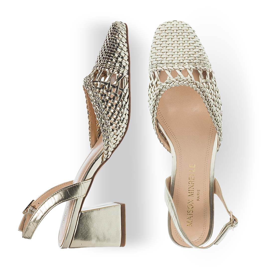 Γυναικείες γόβες Maison Minrelle διαθέσιμες σε ασημί χρώμα. Οι συγκεκριμένες γόβες διαθέτουν λουράκια και στο μπροστινό μέρος είναι σχεδιασμένες από ψάθινο σχέδιο. Μία ξεχωριστή επιλογή για λαμπερές εμφανίσεις με μοναδική άνεση και στυλ! Δερμάτινος εσωτερικός πάτις για να προστατεύει τα πέλματα σας.