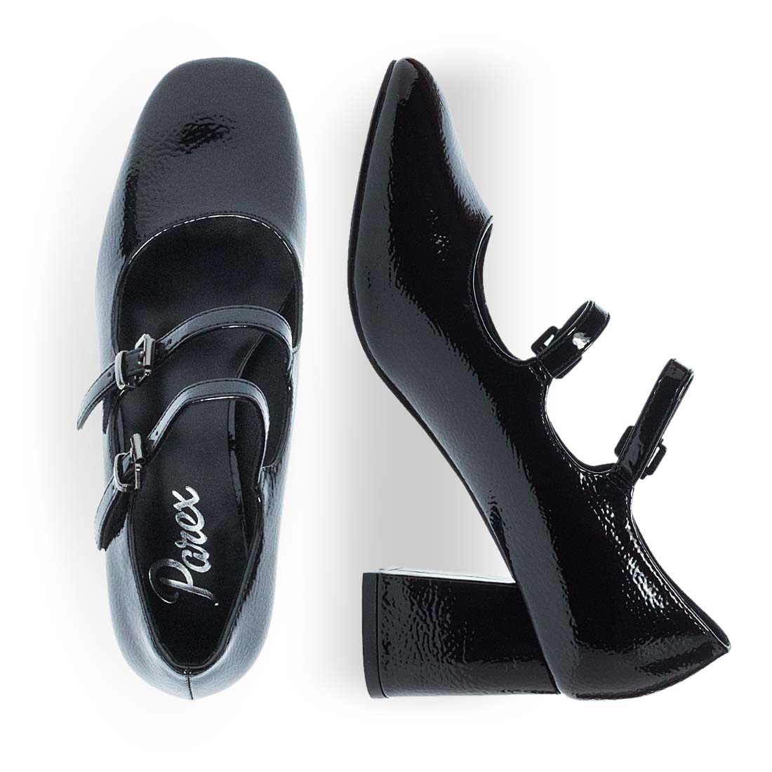 Γυναικείες γόβες Parex. Απολαύστε άνεση και στιλ με αυτές τις φανταστικές γόβες από την Parex. Διαθέσιμες σε μαύρο χρώμα ώστε να τις συνδιάσετε με όλα τα ρούχα σας. Διαθέτουν στρογγυλή μύτη και διπλή μπαρέτα που κλείνουν με αγκράφα. Μαλακός πάτος και ανθεκτική σόλα με block τακούνι σε ιδανικό ύψος. Αυτές οι γυναικείες δερμάτινες γόβες Parex είναι ιδανικές για να τις φορέσετε από το πρωί στο γραφείο εώς την απογευματινή σας πρόβα για χορό.