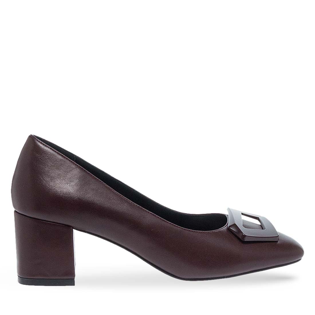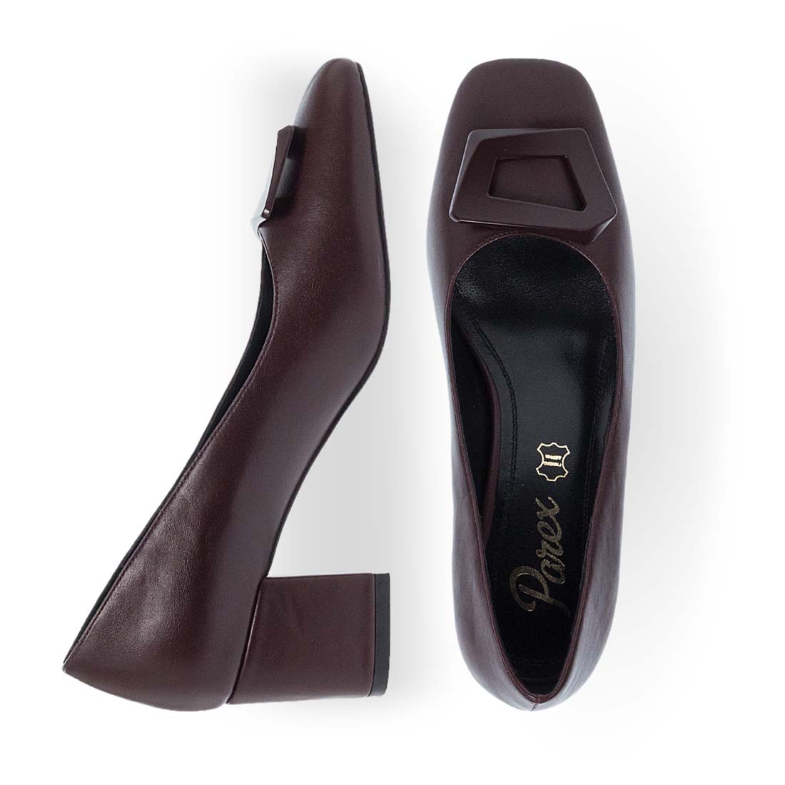 Γυναικείες γόβες Parex. Minimal γόβες με τετράγωνο τακούνι και εντυπωσιακή μοντέρνα αγκράφα. Ένα ζευγάρι που συνδυάζει άνεση και μόδα για business chic εμφανίσεις.