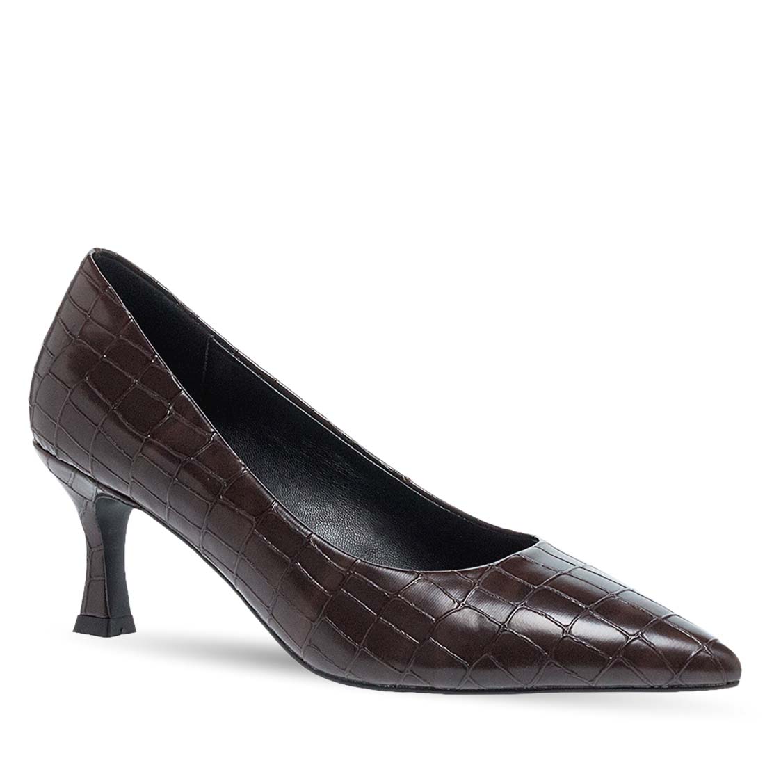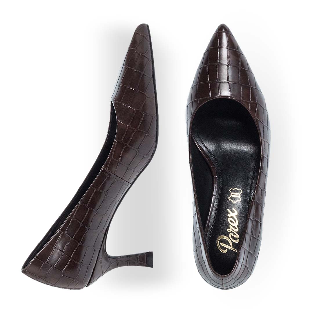 Γυναικείες γόβες Parex. Γυναικείες γόβες σε crocodile pattern, με μυτερή γραμμή και λεπτό τακούνι. Εντυπωσιακές γυναικείες γόβες, δίνουν δυναμικό χαρακτήρα σε κάθε εμφάνιση.