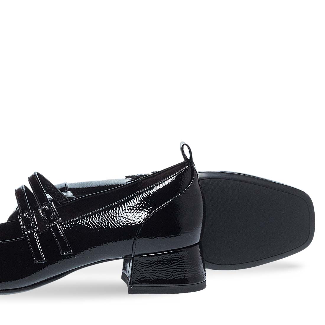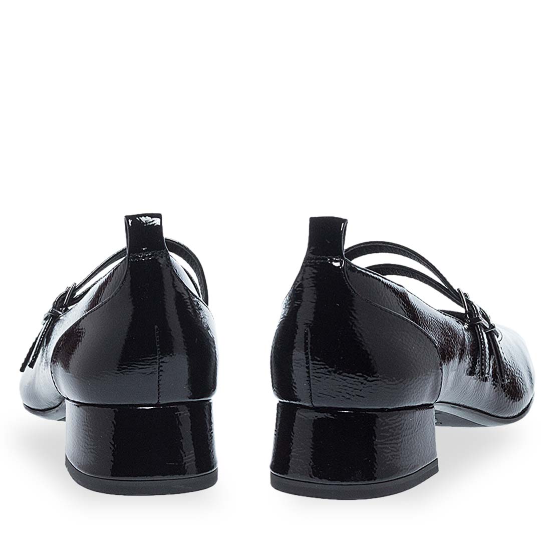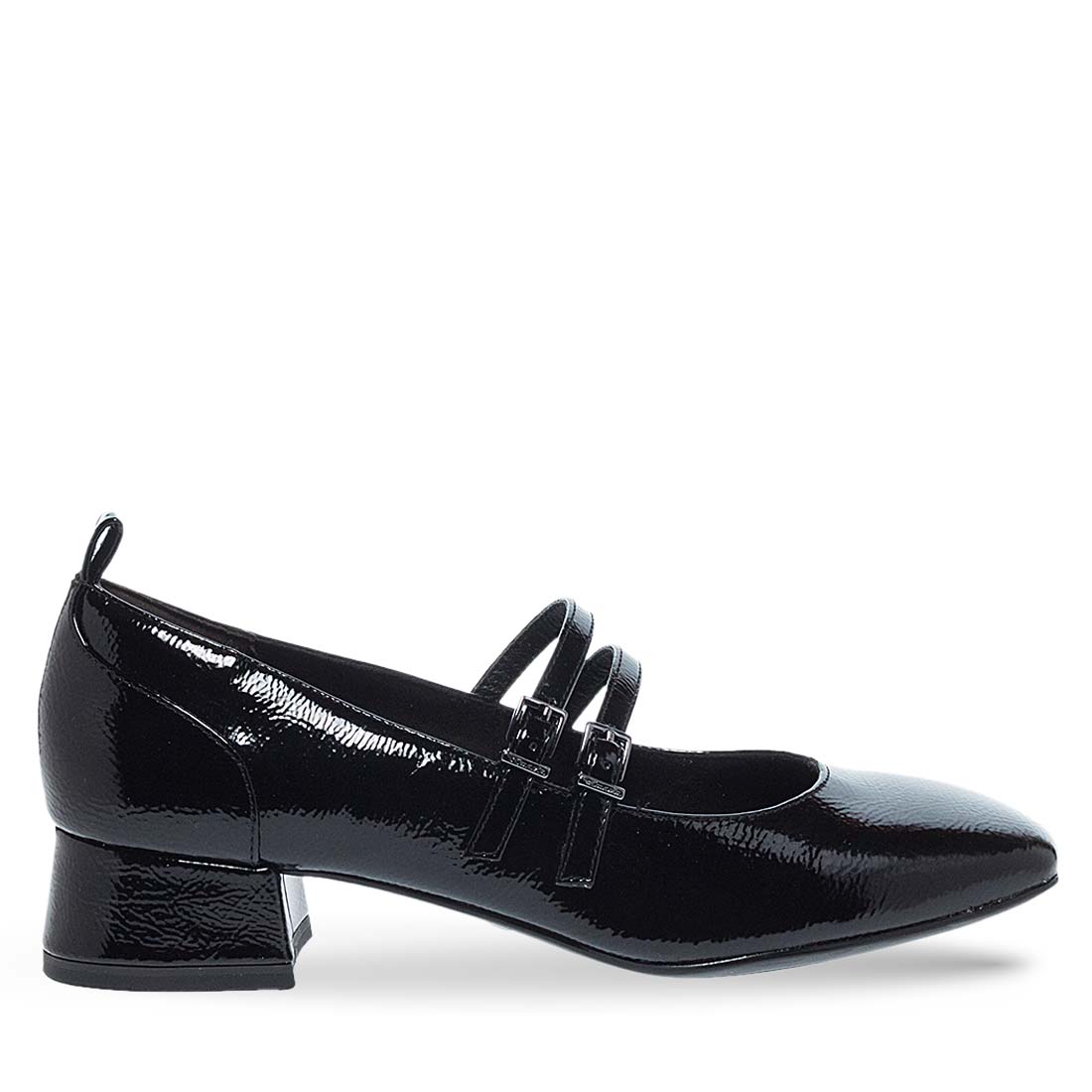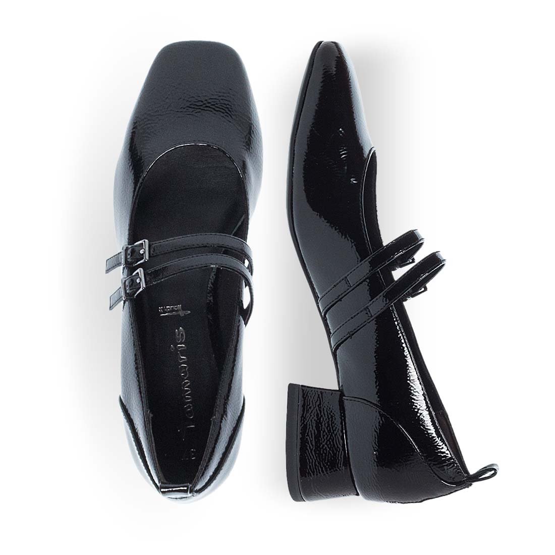 Γυναικείες μαύρες γόβες με μπαρέτα από τη νέα συλλογή της εταιρείας Tamaris. Eπώνυμες γόβες από συνθετικό δέρμα λουστρίνι και με χαμηλό block τακούνι. Κλείσιμο στα λουράκια στο πλάι. Αυτές οι γυναικείες γόβες Tamaris σε στιλ Mary Jane είναι ιδανικές για να τις φορέσετε από το πρωί στο γραφείο εώς την απογευματινή σας βόλτα.