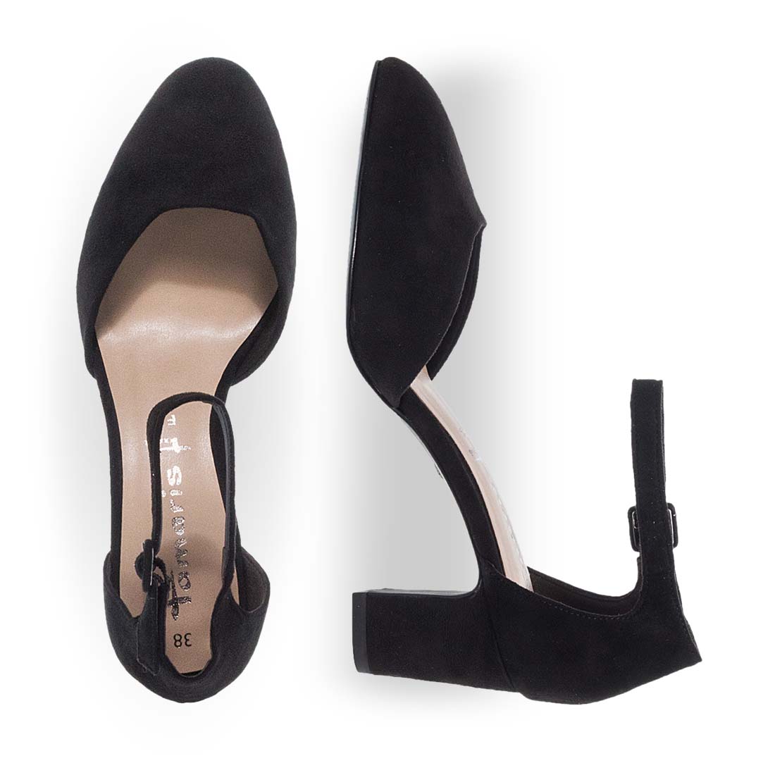 Γυναικείες γόβες της εταιρείας Tamaris, σε μαύρο χρώμα. Έχουν σχεδιαστεί από υψηλής ποιότητας συνθετικά υλικά και έχουν εξωτερικά suede υφή. Διαθέτουν χιαστί λουράκι που κλείνει χαμηλά στον αστράγαλο. Υπέροχες γόβες για ένα chic ντύσιμο. Αναβαθμίστε κάθε σας look με αυτές τις επώνυμες γόβες Tamaris.
