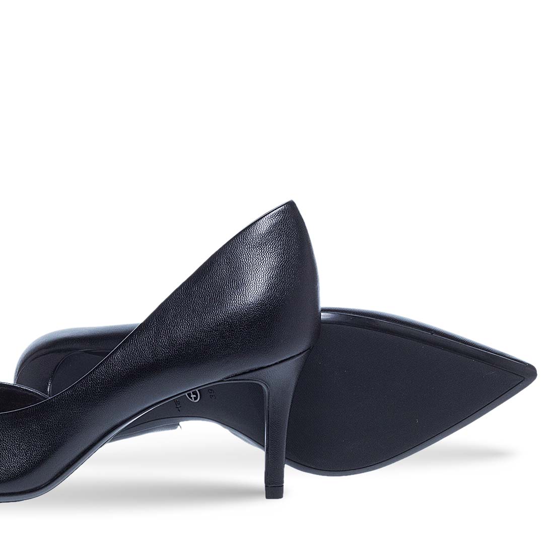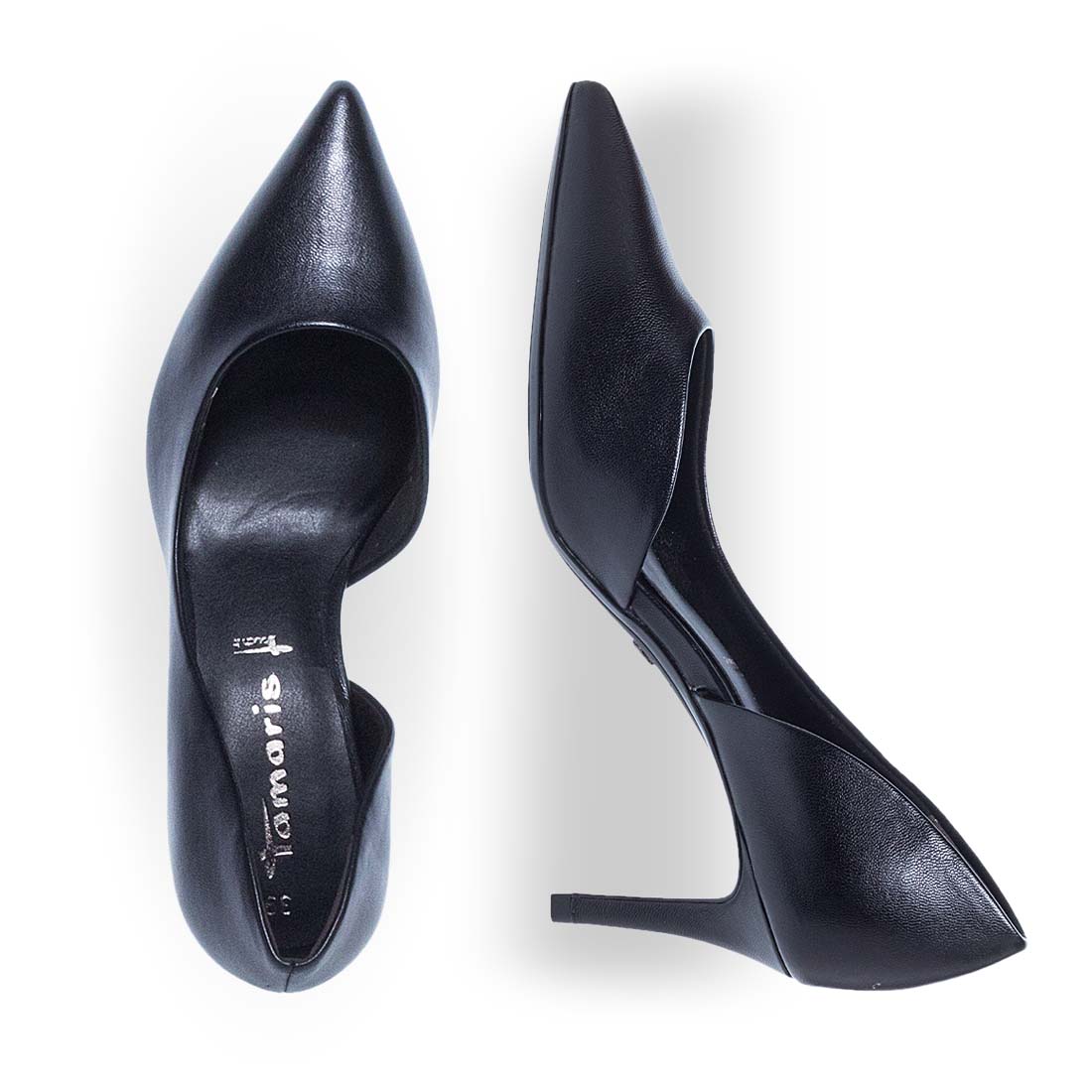 Μαύρες γυναικείες γόβες από τη νέα συλλογή Tamaris. Έχουν μυτερή μύτη και λοξό σχέδιο στο πλάι για να αναδείξει τα καλλίγραμα πόδια σας. Είναι σχεδιασμένα από συνθετικό δέρμα υψηλής ποιότητας και έχουν εντυπωσιακό λεπτό τακούνι. Επώνυμες γόβες με μαλακό πάτο Touch-It και αντιολισθητική σόλα.