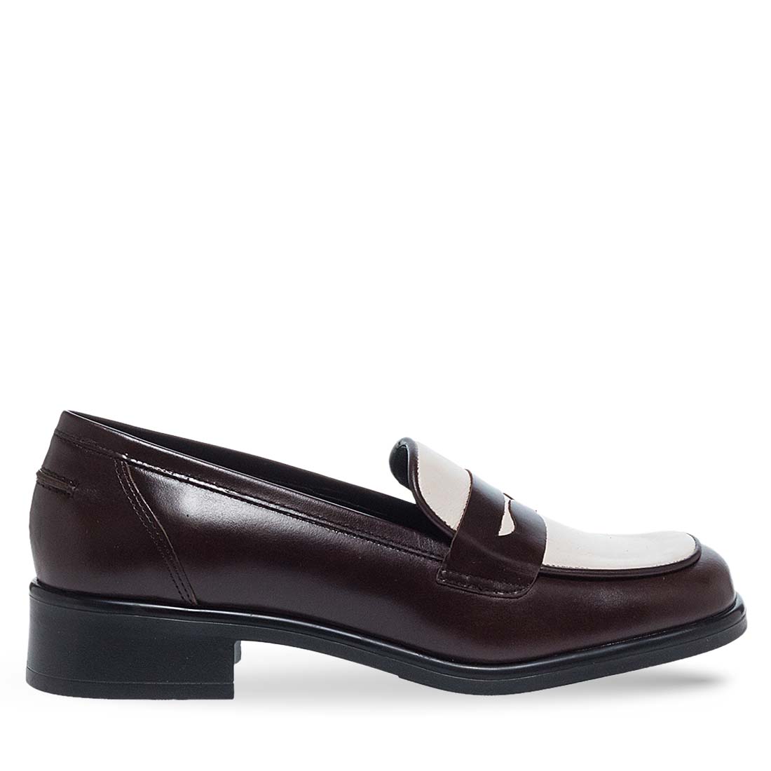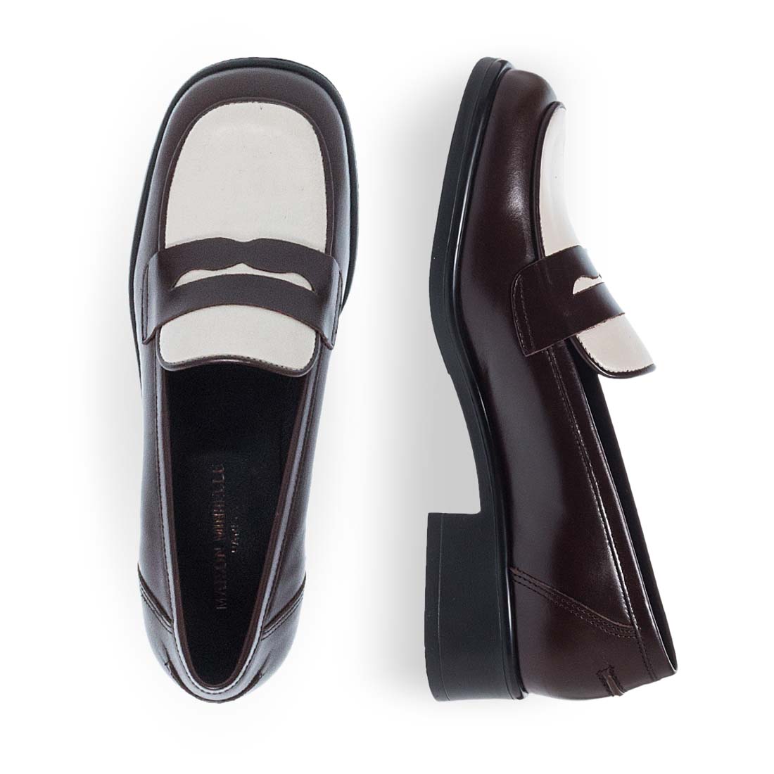 Δίχρωμα μοκασίνια Maison Minrelle κατασκευασμένα από δέρμα. Σχεδιασμένα σε κλασσική γραμμή με διχρωμία, εμπνευσμένα από τις τελευταίες τάσεις της μόδας για να ολοκληρώσουν το σοφιστικέ στιλ σου.