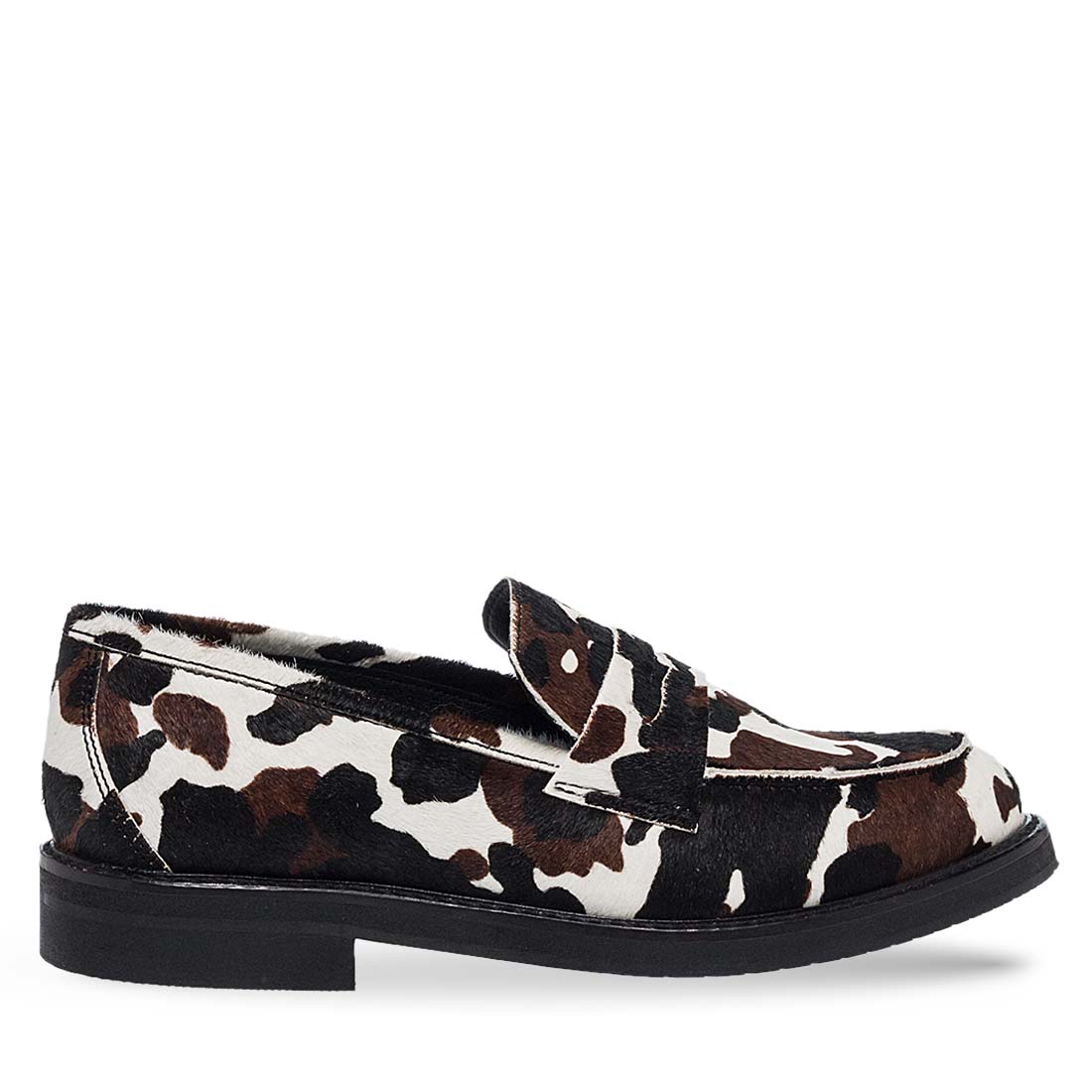 Γυναικεία δερμάτινα μοκασίνια από το brand Maison Minrelle. Ξεχωρίστε με τα Maison Minrelle μοκασίνια σε μοναδικό animal print. Το καφέ-λευκό μοτίβο προσφέρει έντονη προσωπικότητα και κάνει κάθε εμφάνιση πιο μοντέρνα. Η άνετη φόρμα τους και η minimal γραμμή τα καθιστούν ιδανικά γυναικεία loafers για στυλ από το πρωί έως το βράδυ.