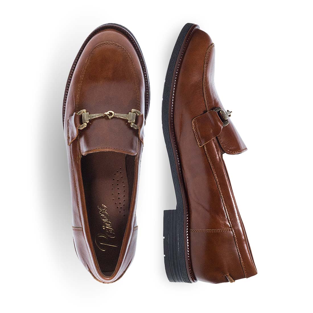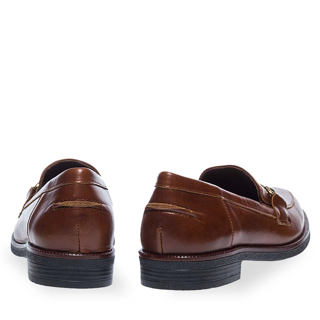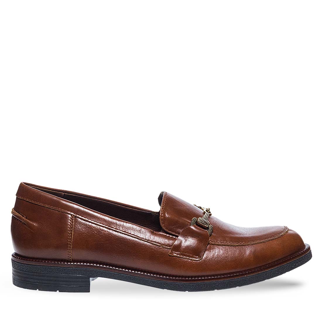 Γυναικεία δερμάτινα μοκασίνια Parex. Δερμάτινα μονόχρωμα μοκασίνια σε μαύρο,κονιάκ και ταμπά χρώμα με μεταλλική λεπτομέρεια στο πάνω μέρος. Διαθέτουν αναπαυτικό δερμάτινο πάτημα και χαμηλό τακούνι για άνετα και σταθερά βήματα όλη μέρα.