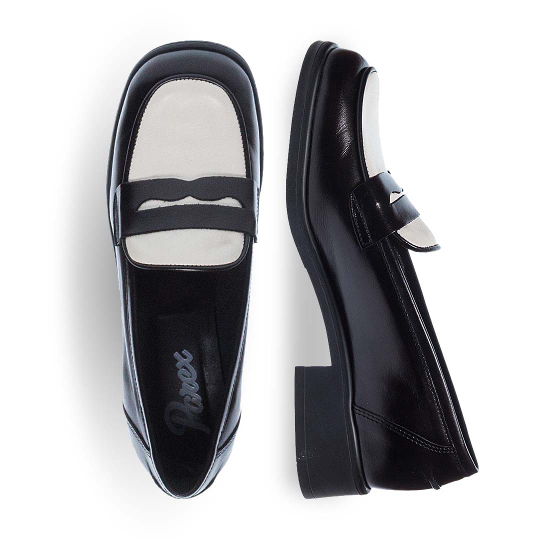Γυναικεία δερμάτινα μοκασίνια Parex. Η απόλυτη επιλογή της σεζόν είναι αυτά τα δίχρωμα δερμάτινα μοκασίνια από την Parex. Ανθεκτική σόλα με χαμηλό τακούνι και εξαιρετικά μαλακό δερμάτινο πέλμα. Ευκολοφόρετα,ξεχωρίζουν για την διχρωμία,διαθέσιμα σε μαύρο και ταμπά χρώμα. Τολμήστε να συνδιάσετε αυτά τα μοντέρνα δίχρωμα δερμάτινα μοκασίνια με μονόχρωμα ρούχα σας και ανανεώστε το στιλ σας.