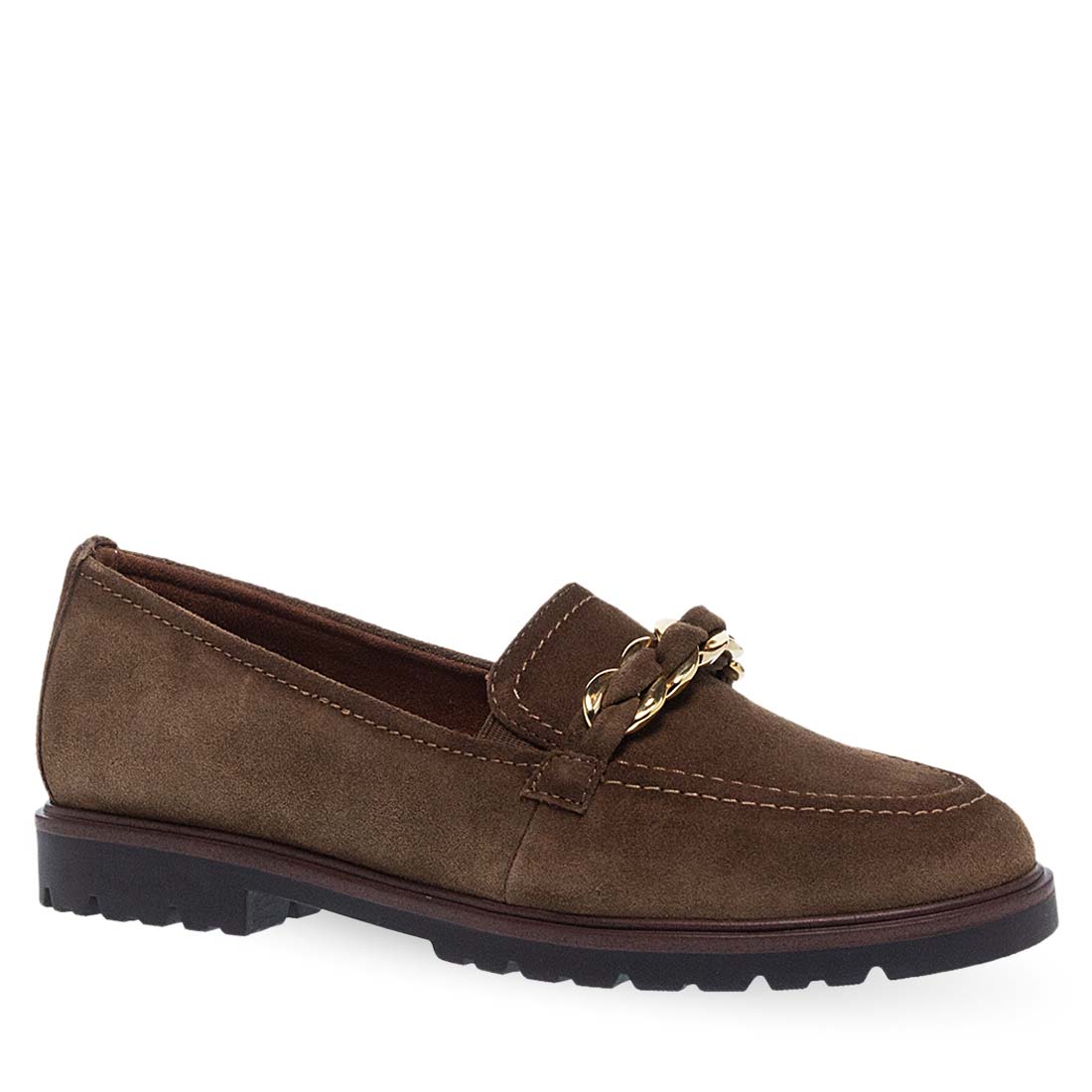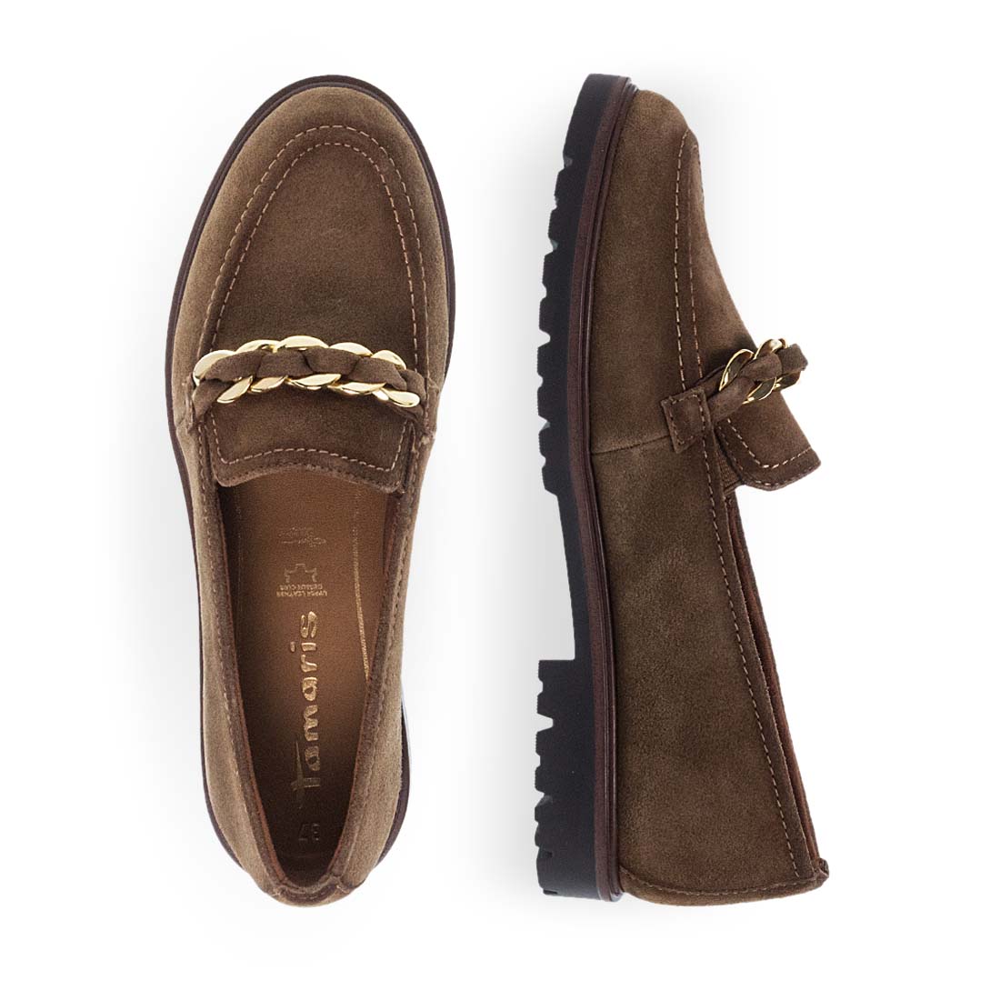 Γυναικεία δερμάτινα μοκασίνια από το brand Tamaris. Γυναικεία δερμάτινα μοκασίνια σε ανοιχτή καφέ απόχρωση με χρυσή λεπτομέρεια, ιδανικό για ανοιξιάτικες εμφανίσεις.