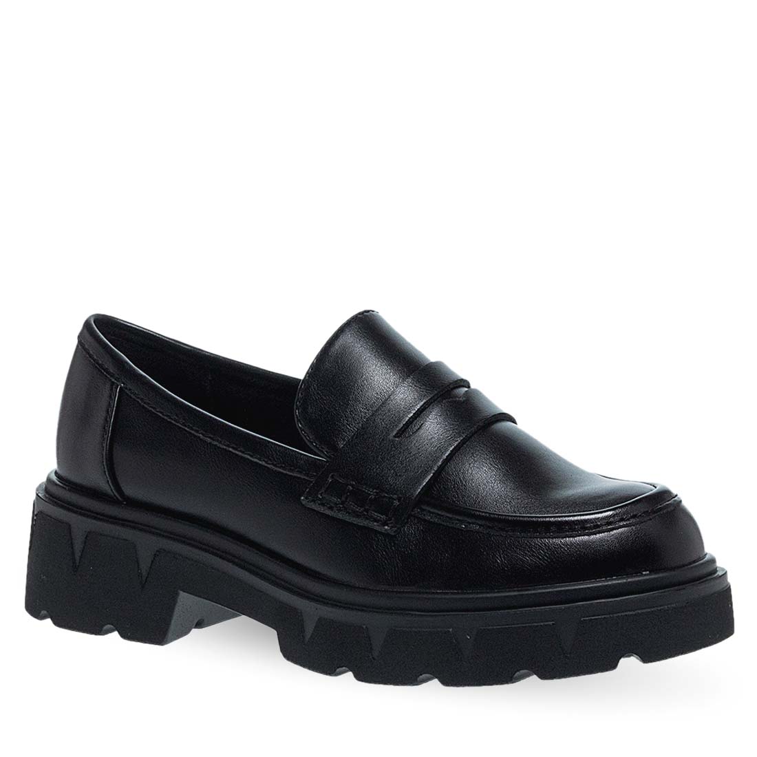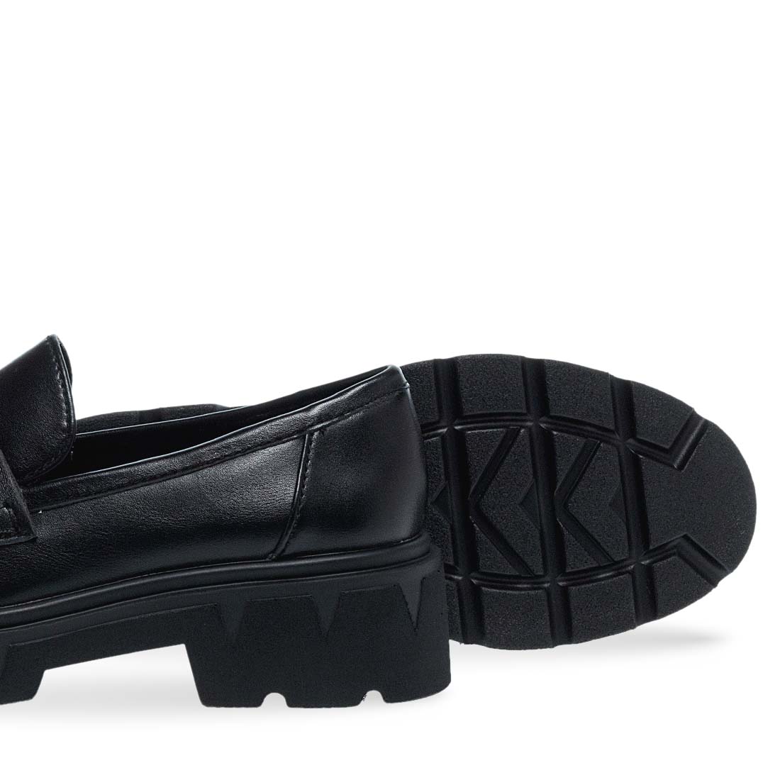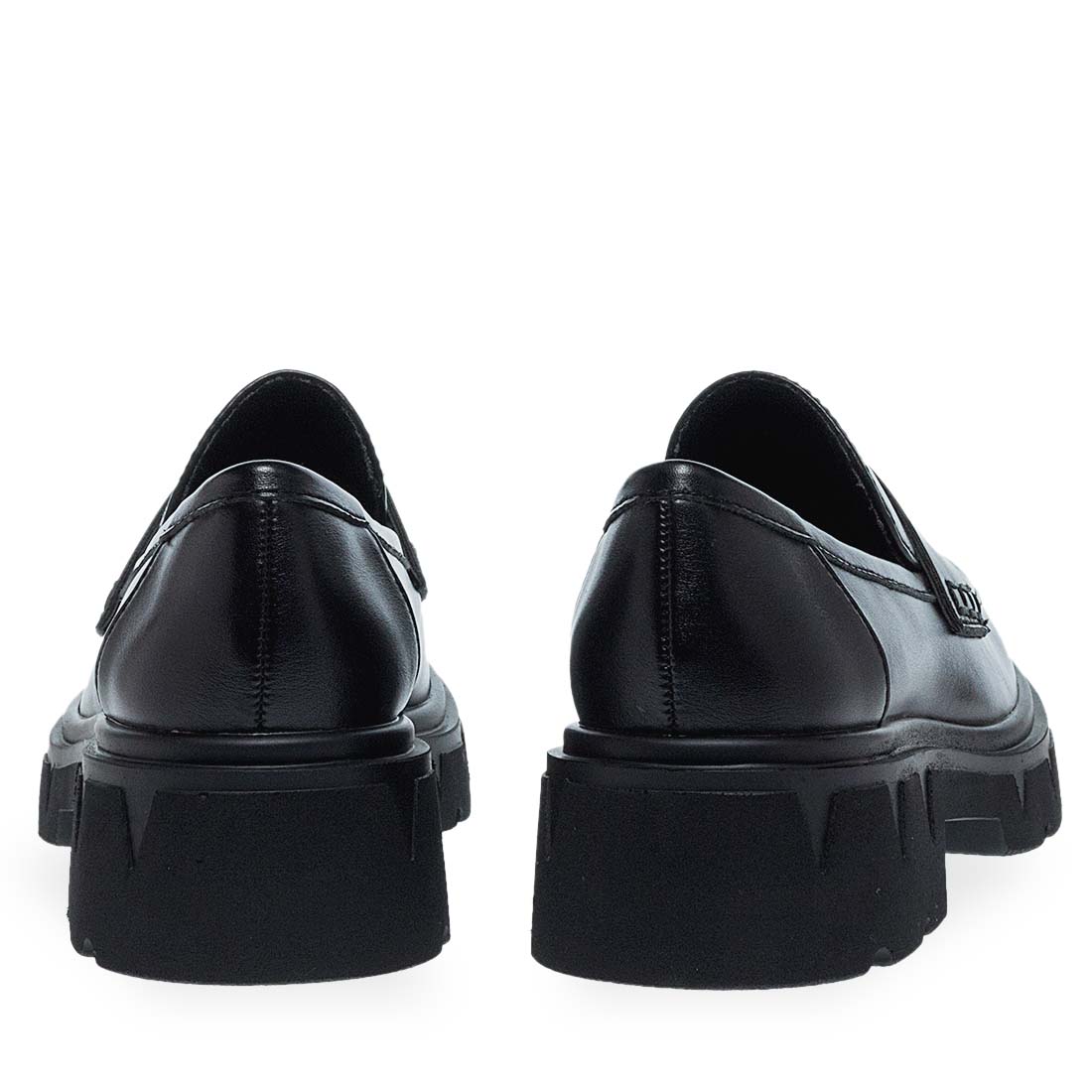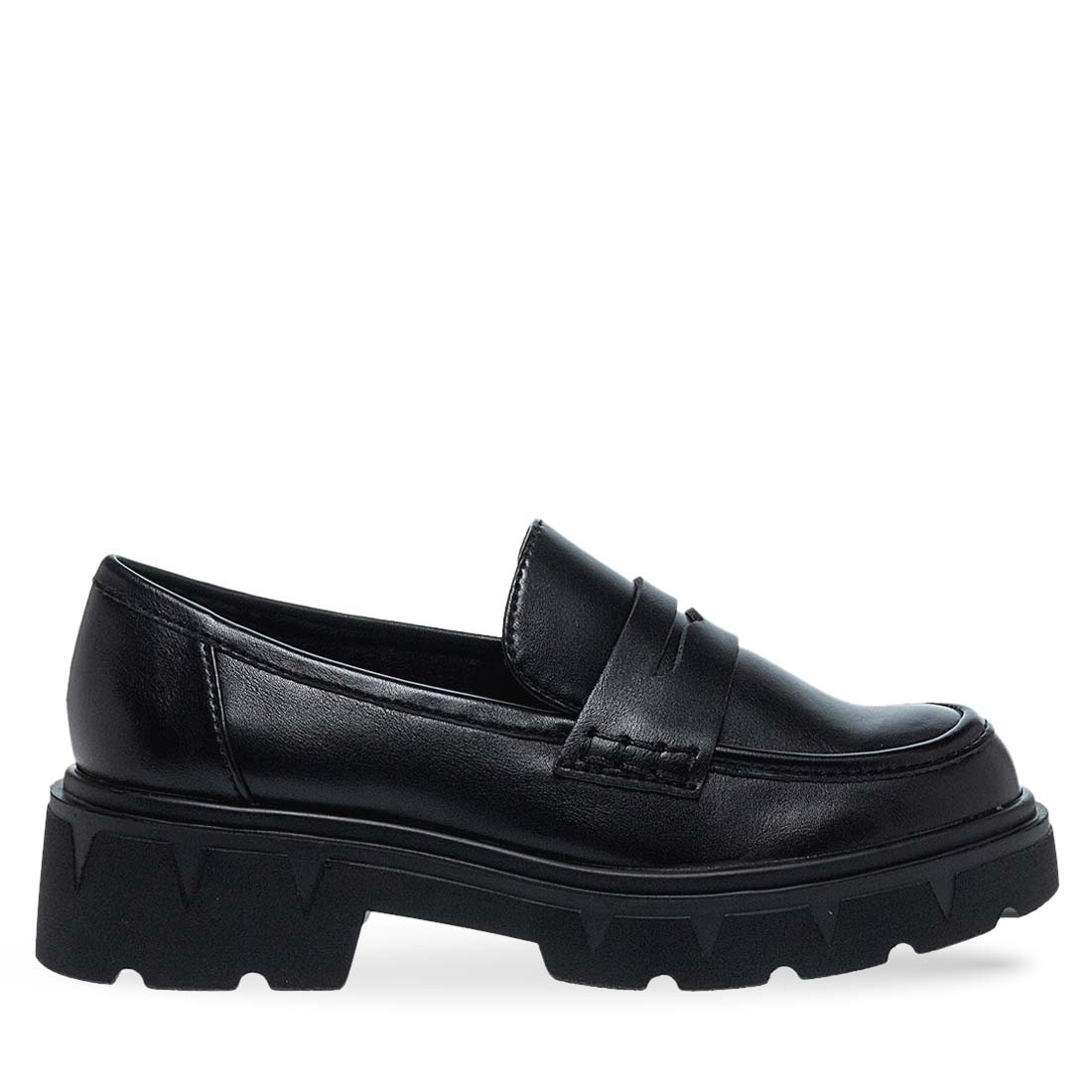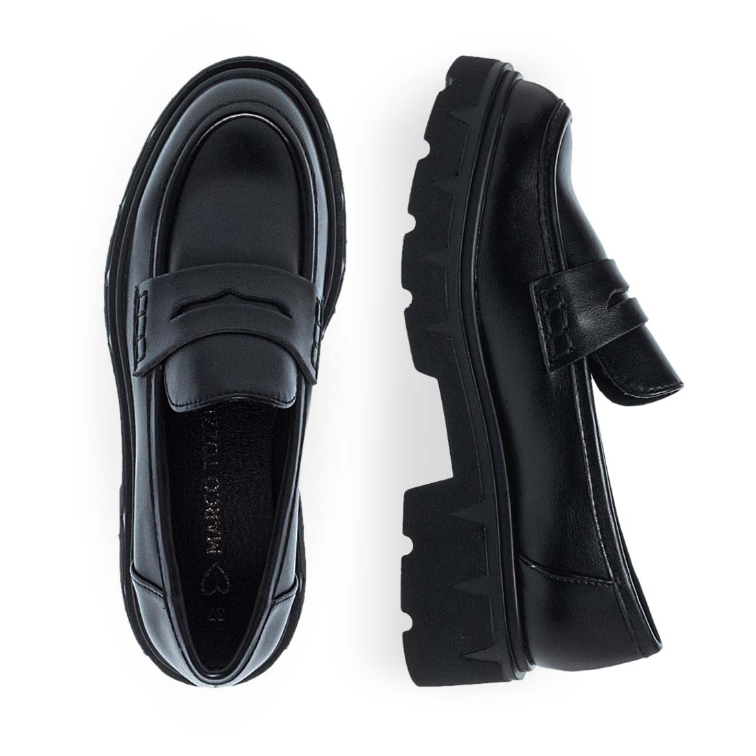 Γυναικεία μοκασίνια από το brand Marco Tozzi. Γυναικεία μαύρα μοκασίνια Marco Tozzi με minimal σχεδιασμό και χοντρή σόλα, για καθημερινή κομψότητα.