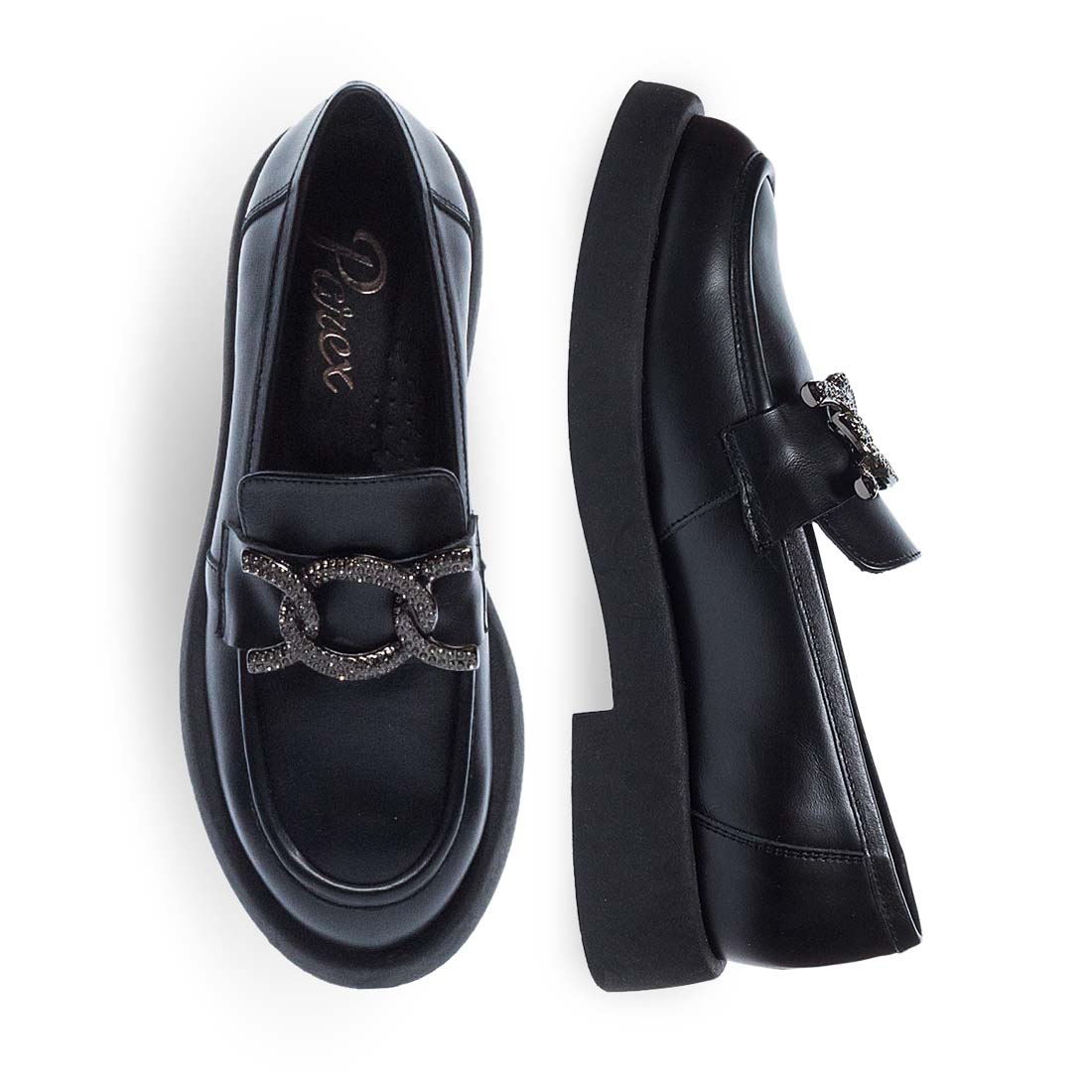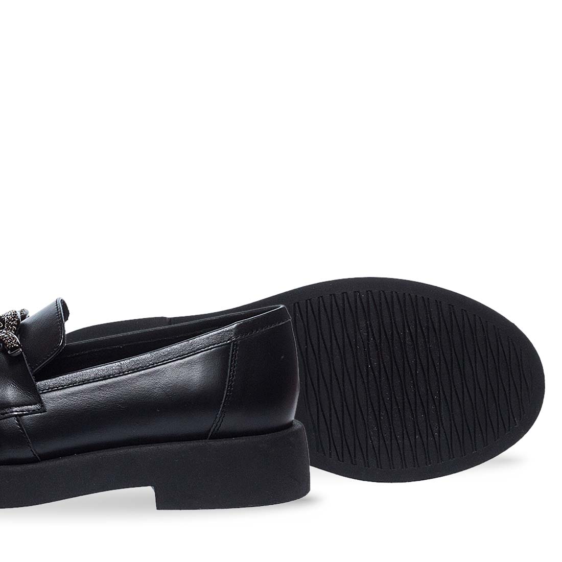 Μοκασίνια με αγκράφα διακοσμημένη με στρας στο πάνω μέρος. Μαλακά μοκασίνια με εύκαμπτη, φλατ σόλα. Δερμάτινα μοκασίνια, ελληνικής κατασκευής. Δώσε λάμψη στο office look σου!