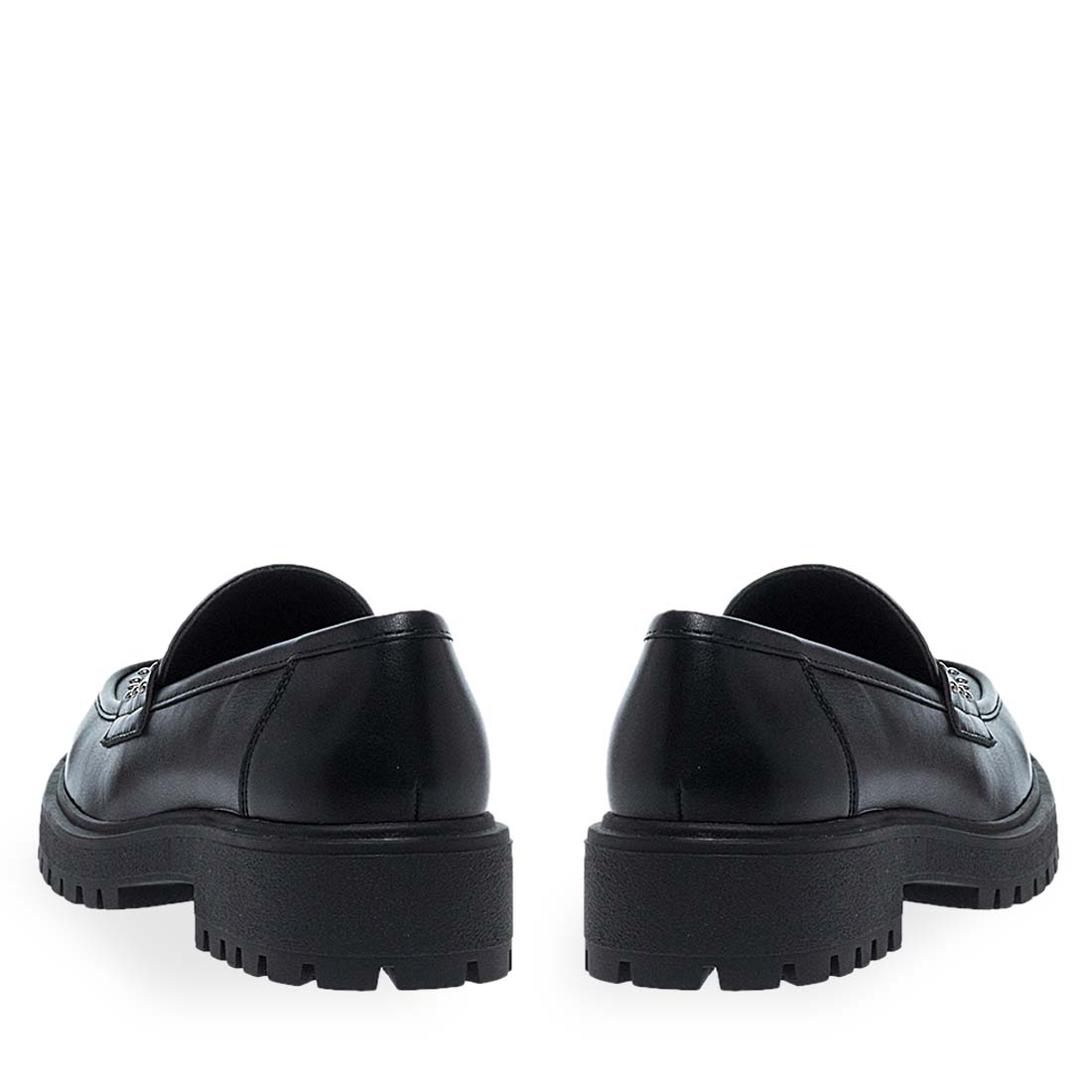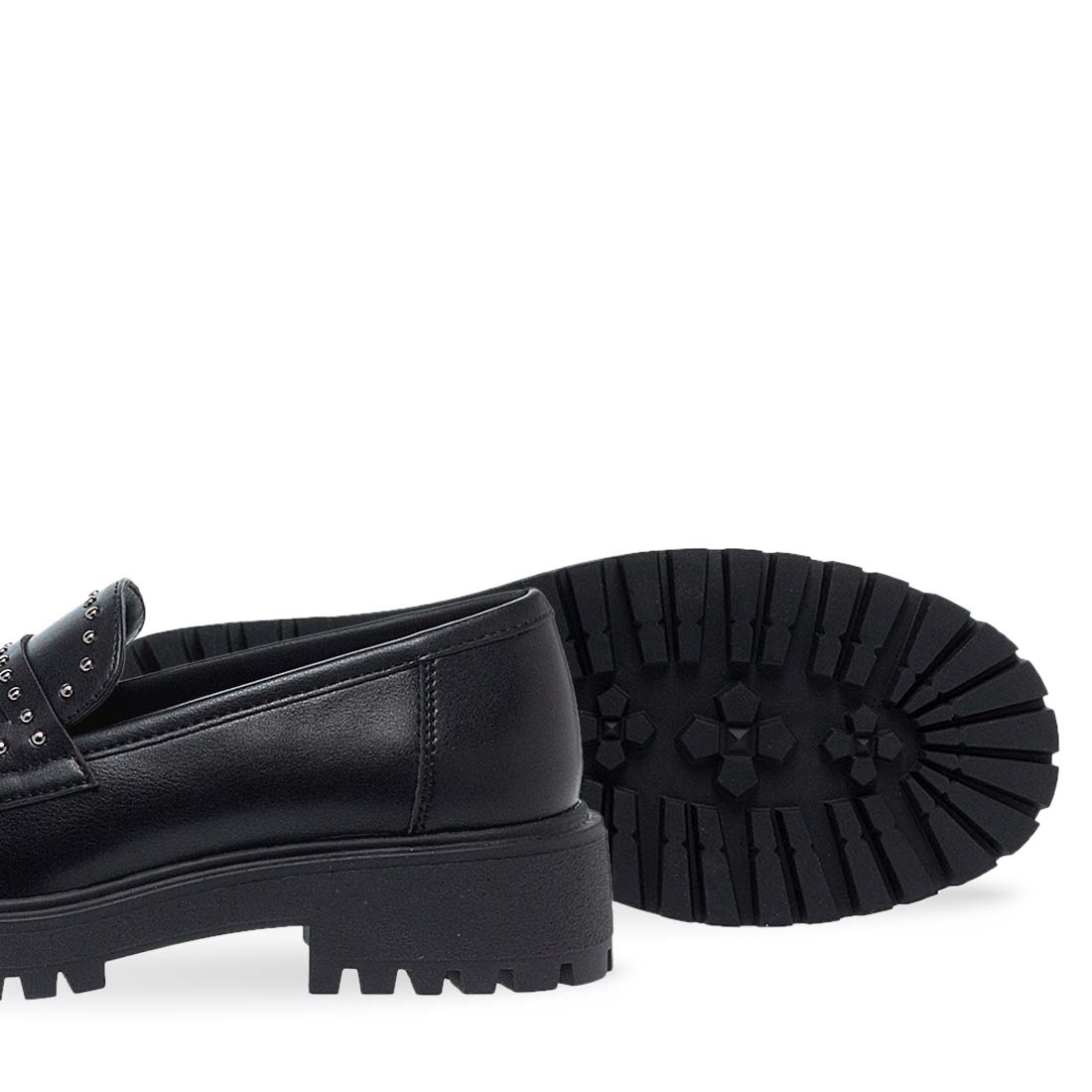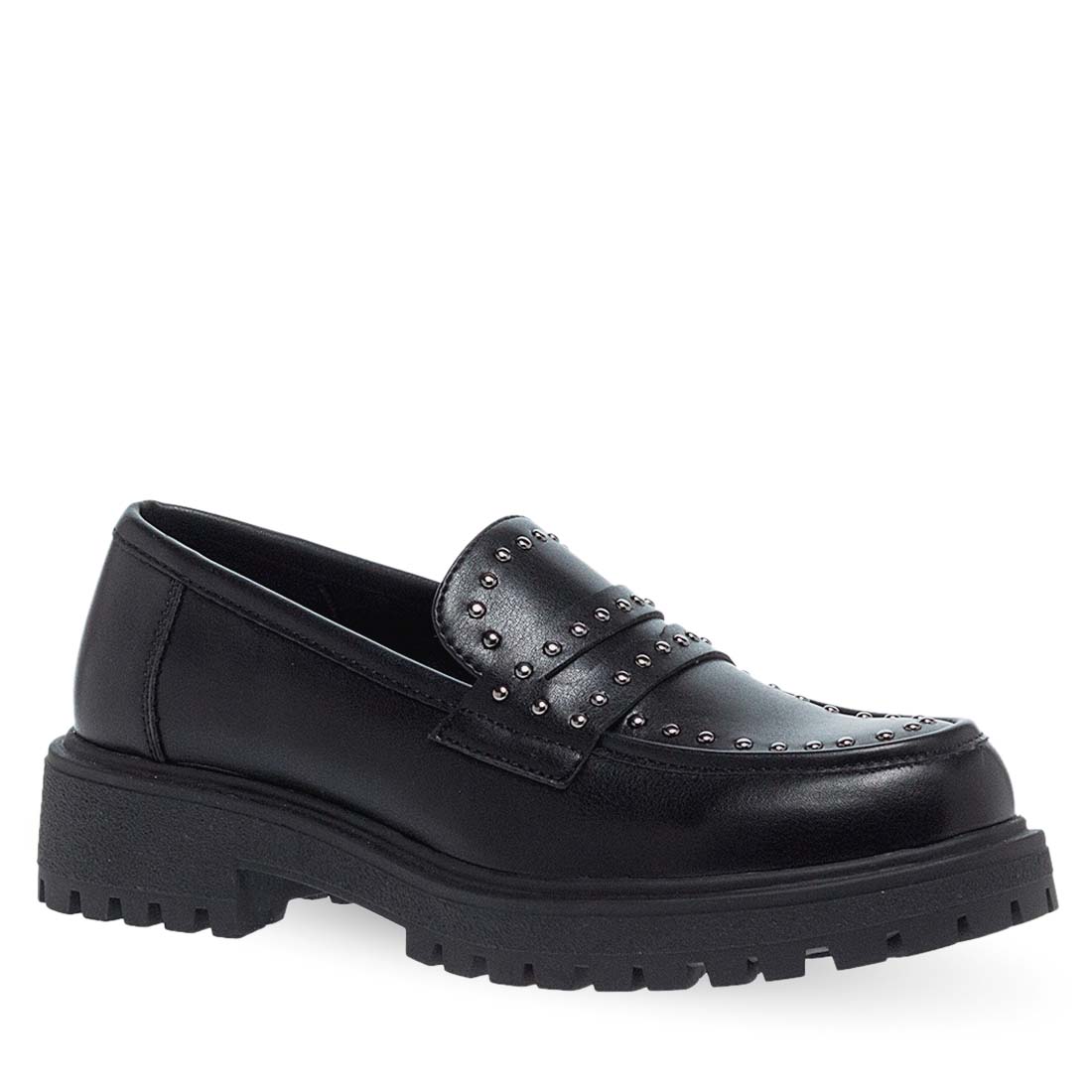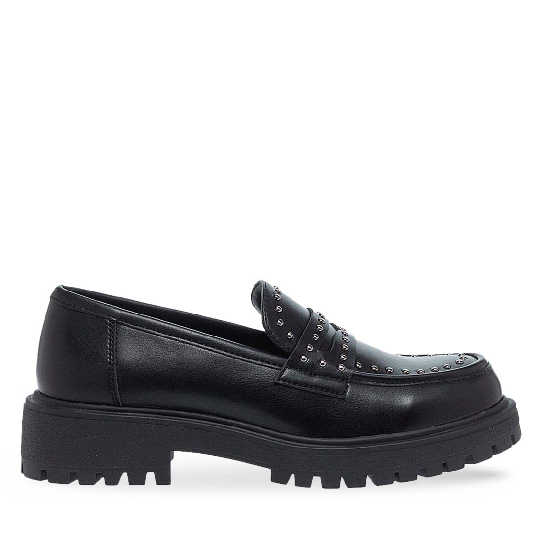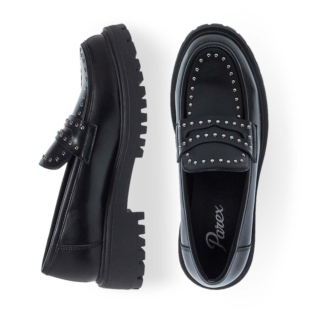 Γυναικεία μοκασίνια Parex. Μαύρα γυναικεία μοκασίνια Parex με διακοσμητικά τρουκς. Άνετα και στυλάτα με χοντρή σόλα, για νεανική urban εμφάνιση.