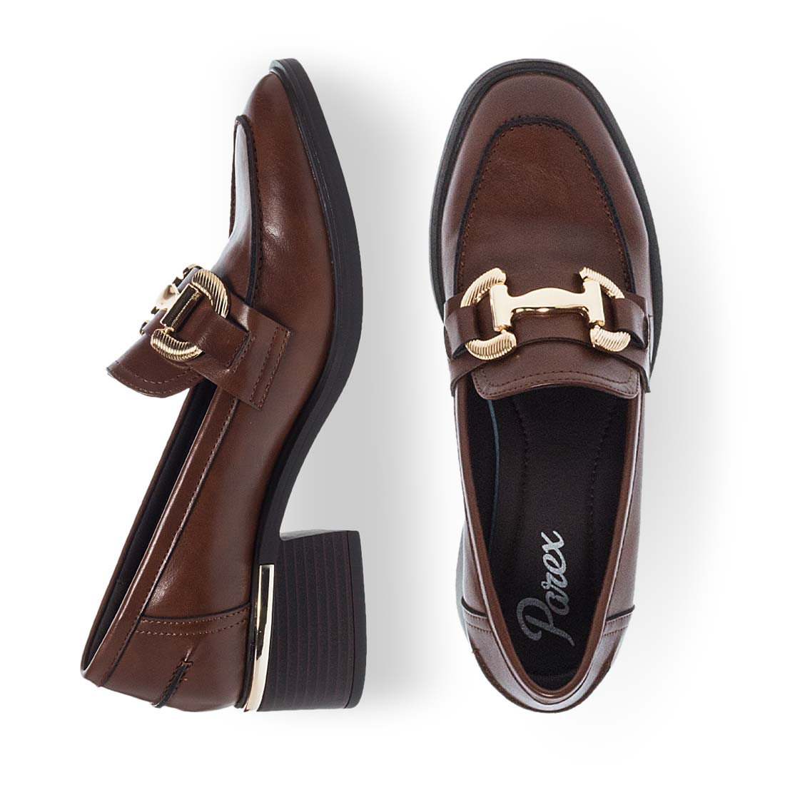 Γυναικεία μοκασίνια Parex. Ακολουθήστε πιστά τις τάσεις της μόδας με αυτά τα γυναικεά μοκασίνια από την Parex. Διαθέτουν μεταλλική αγκράφα στο επάνω μέρος και μεταλλική λεπτομέρεια στο block τακούνι. Εξαιρετικά μαλακός εσωτερικός πάτος και ανθεκτική σόλα. Διαθέσιμα σε μαύρο και κάμελ χρώμα, ξεχωρίζουν για τις μεταλλικές λεπτομέρειες.