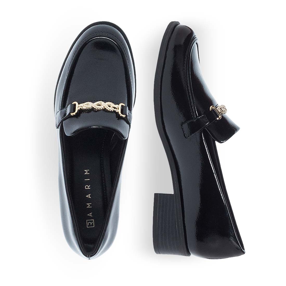 Υπέροχα μοκασίνια Ramarim από συνθετικο δέρμα λουστρίνι. Διαθέτουν στο επάνω μέρος εντυπωσιακή χρυσή αλυσίδα. Χαμηλό τακούνι για να σας χαρίσει σταθερά βήματα.