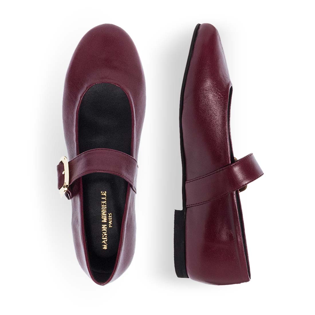 Γυναικείες δερμάτινες μπαλαρίνες από το brand Maison Minrelle. Γυναικείες δερμάτινες μπαλαρίνες σε μαύρο, πούρο, μπορντώ και πράσινο χρώμα, με λουράκι και αγκράφα για σταθερότητα και στυλ.