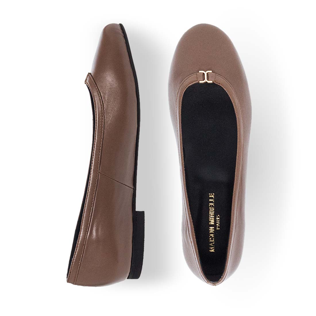 Γυναικείες δερμάτινες μπαλαρίνες από το brand Maison Minrelle. Γυναικείες δερμάτινες μπαλαρίνες σε μαύρο, μπλε, πούρο, μπορντώ και πράσινο χρώμα, με διακριτική μεταλλική λεπτομέρεια. Minimal design για διαχρονικό στυλ.