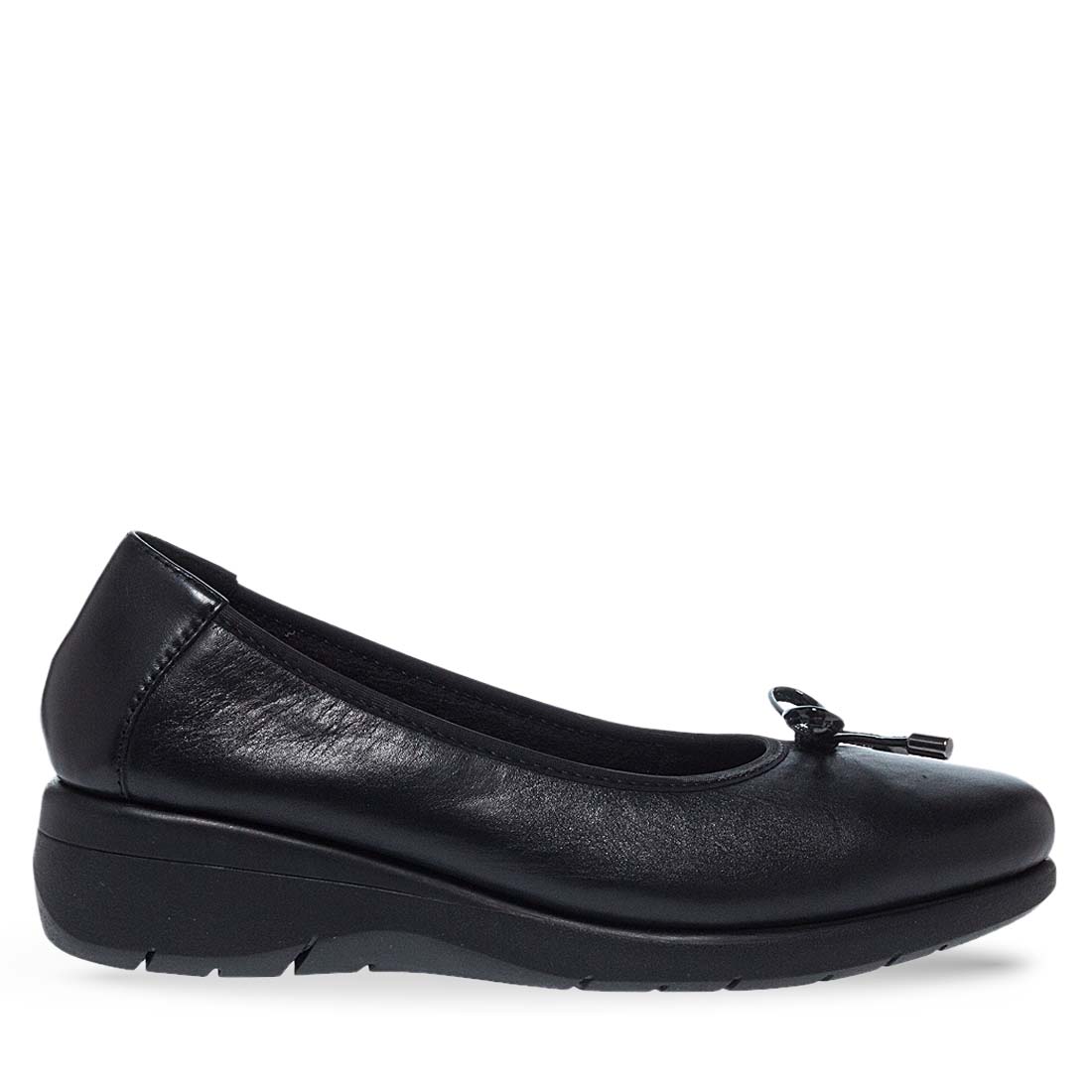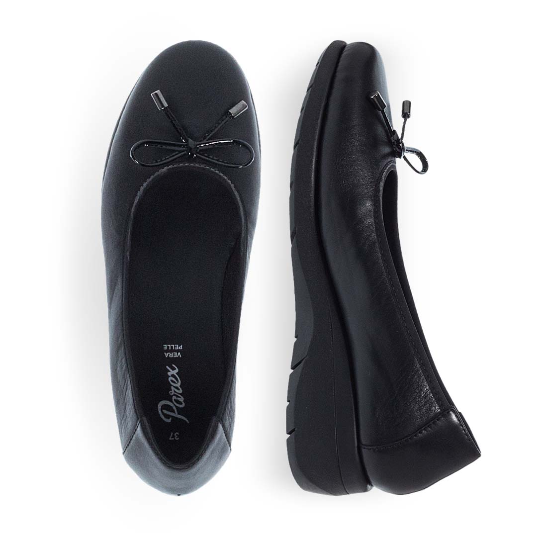 Γυναικείες μπαλαρίνες Parex. Φροντίστε να είστε in fashion με αυτό το ζευγάρι γυναικείες δερμάτινες μονόχρωμες μπαλαρίνες από την Parex. Στρογγυλή μύτη στο μπροστά μέρος με φιογκάκι και τακούνι πλατφόρμα. Εξαιρετικά αναπαυτικο δερμάτινο πέλμα. Γυναικείες δερμάτινες μπαλαρίνες Parex διαθέσιμες σε μαύρο χρώμα.