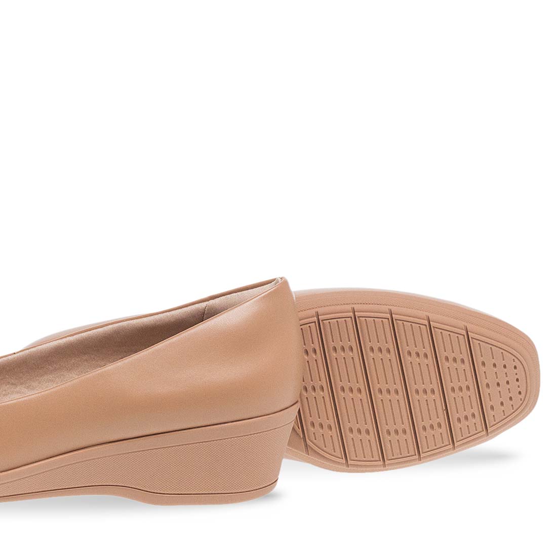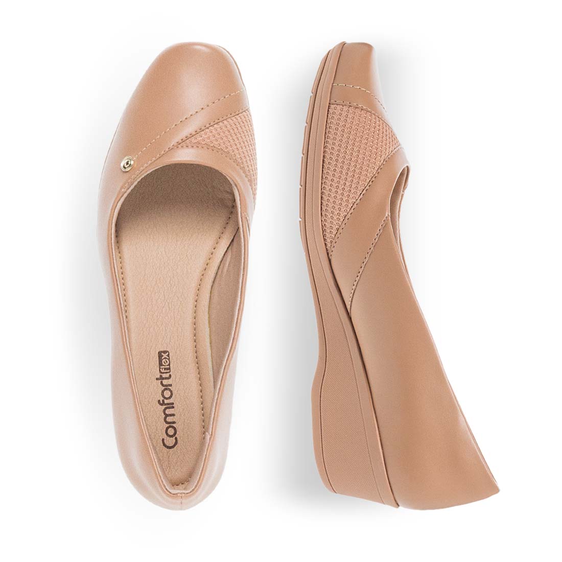 Γυναικείες μπεζ μπαλαρίνες Comfort Flex από συνθετικό δέρμα υψηλής ποιότητας. Διαθέτουν πολύ μάλακό εσωτερικό πάτο με μαξιλαράκι για να προστατεύει τα πέλματα σας. Επώνυμες και κομψές μπαλαρίνες με στρογγυλή μύτη μπροστά. Ιδανικές μπαλαρίνες για να φορεθούν από το πρωί ως το βράδυ.