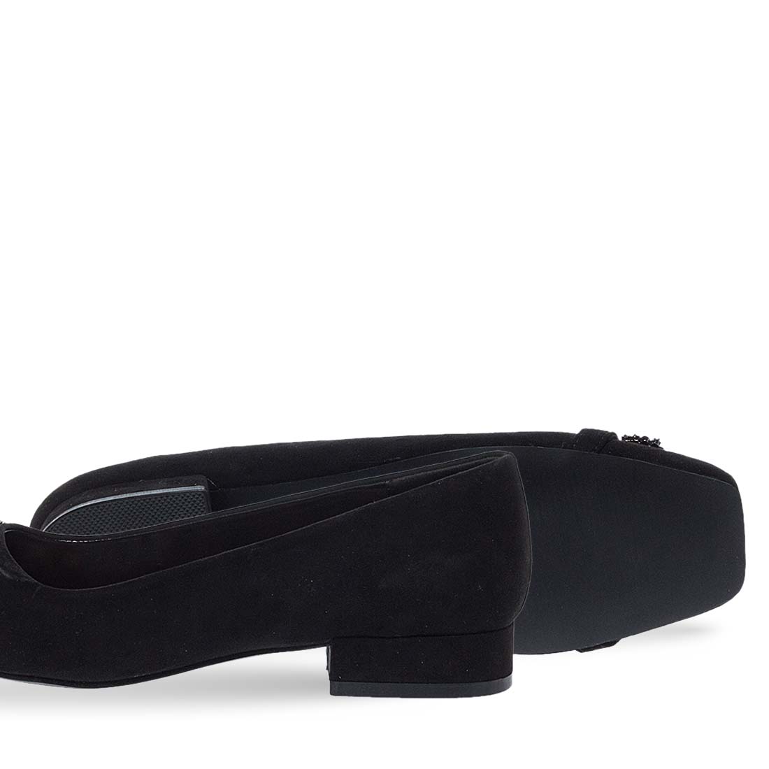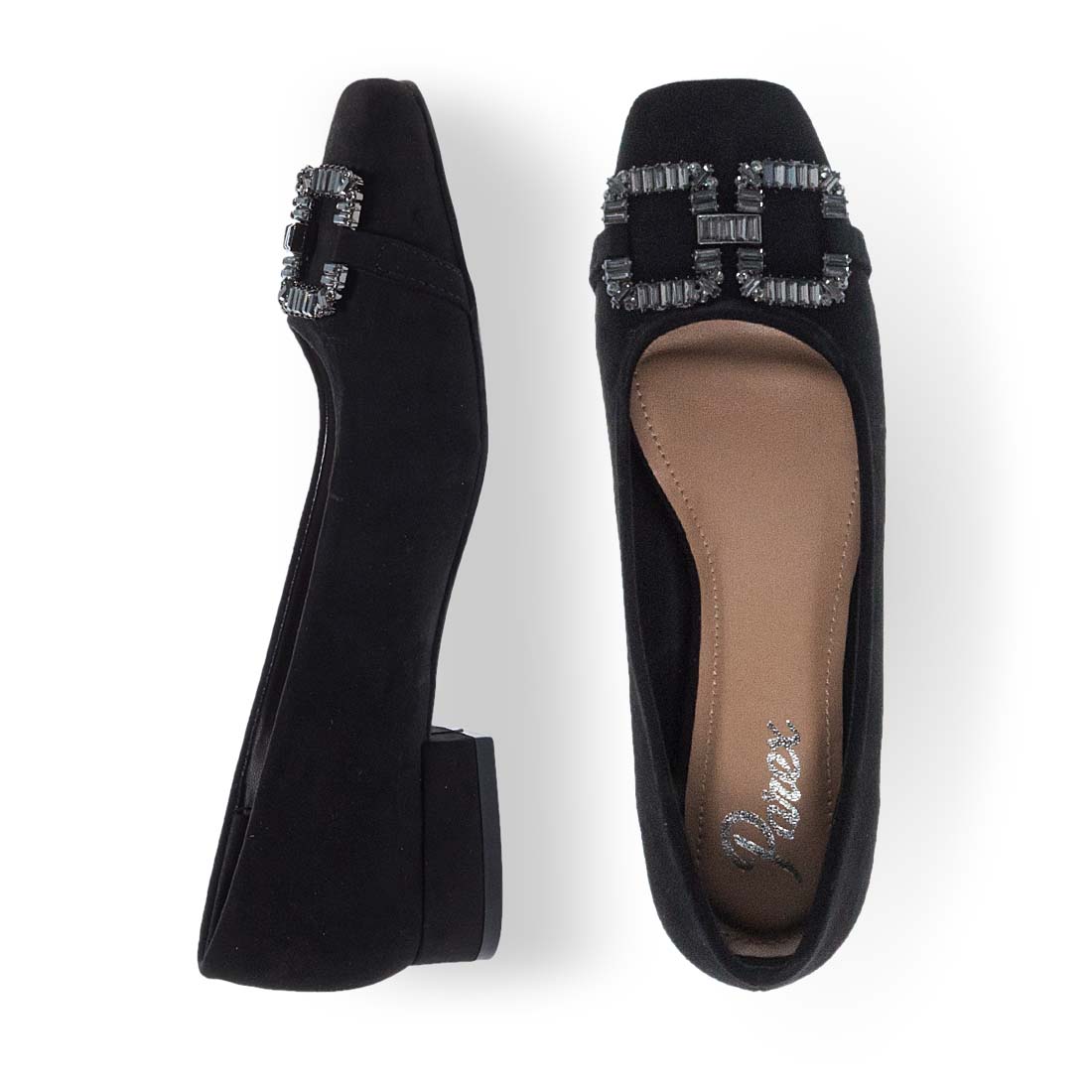 Γυναικείες μπαλαρίνες Parex. Μοντέρνες μονόχρωμες μπαλαρίνες από την Parex οι οποίες δεν πρέπει να λείπουν από την συλλογή σας. Ξεχωρίζουν για την μεταλλική αγκράφα στο πάνω μέρος. Μαλακό δερμάτινο πάτημα και ανθεκτική σόλα με χαμηλό block τακούνι. Εξωτερική σύνθεση από μαλακό σουέτ,διαθέσιμες σε μαύρο χρώμα
