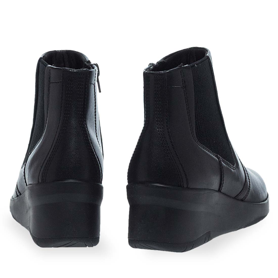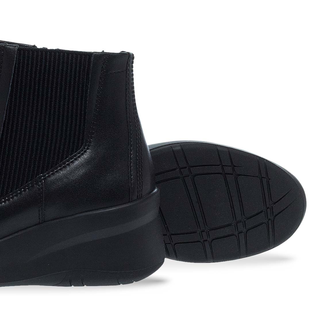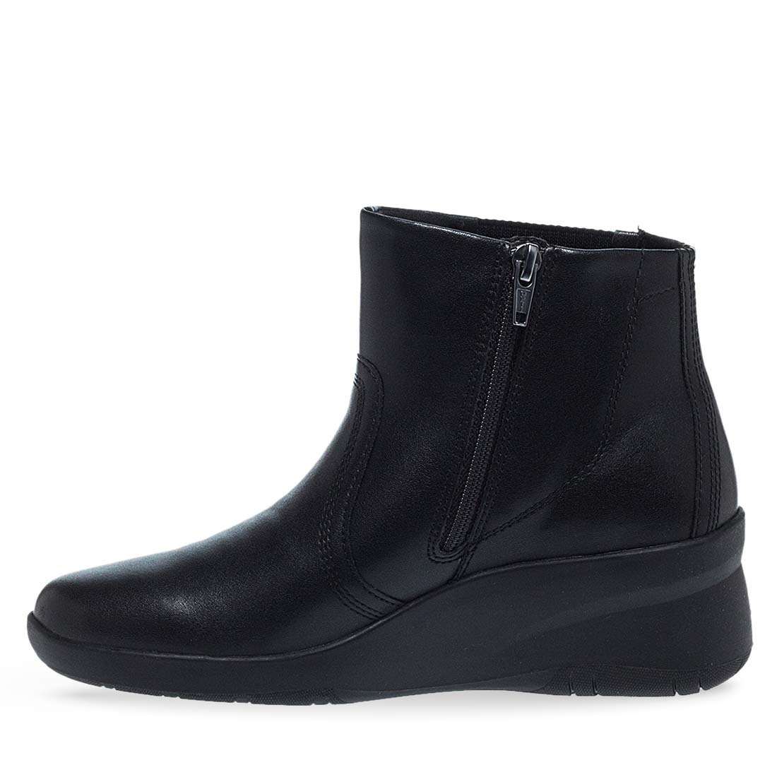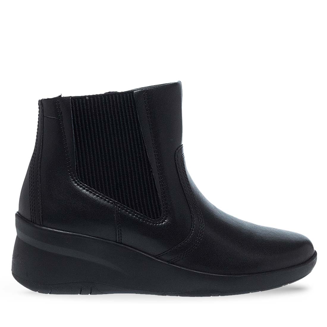 Γυναικεία δερμάτινα μποτάκια από τη νέα συλλογή του brand Clarks. Διαθέτουν λάστιχο στην εξωτερική πλευρά και τακούνι πλατφόρμα για να σας χαρίσουν άνετα βήματα. Κλείσιμο με φερμουάρ. Επώνυμα κλασικά μποτάκια με διαχρονικό χαρακτήρα.