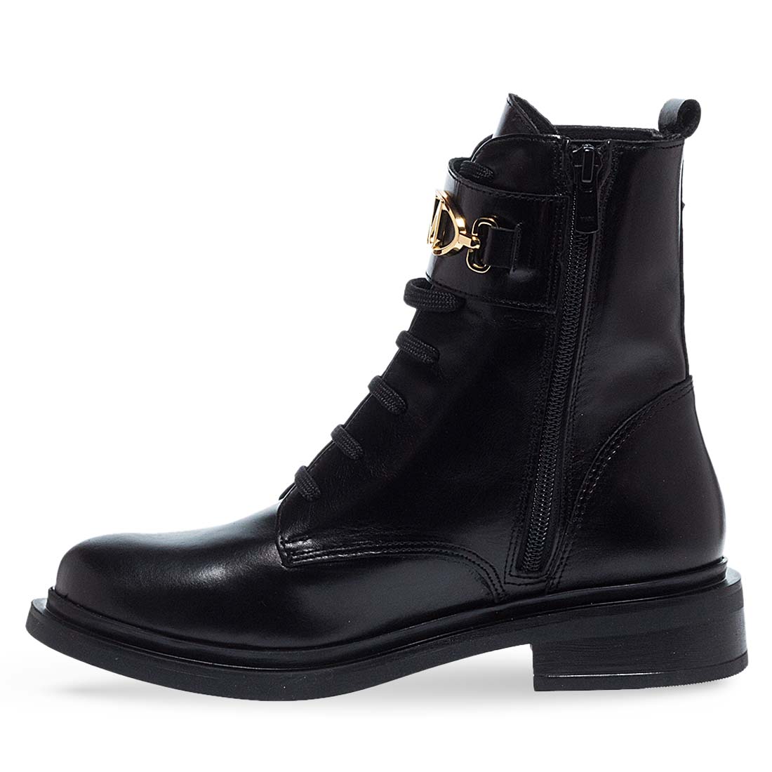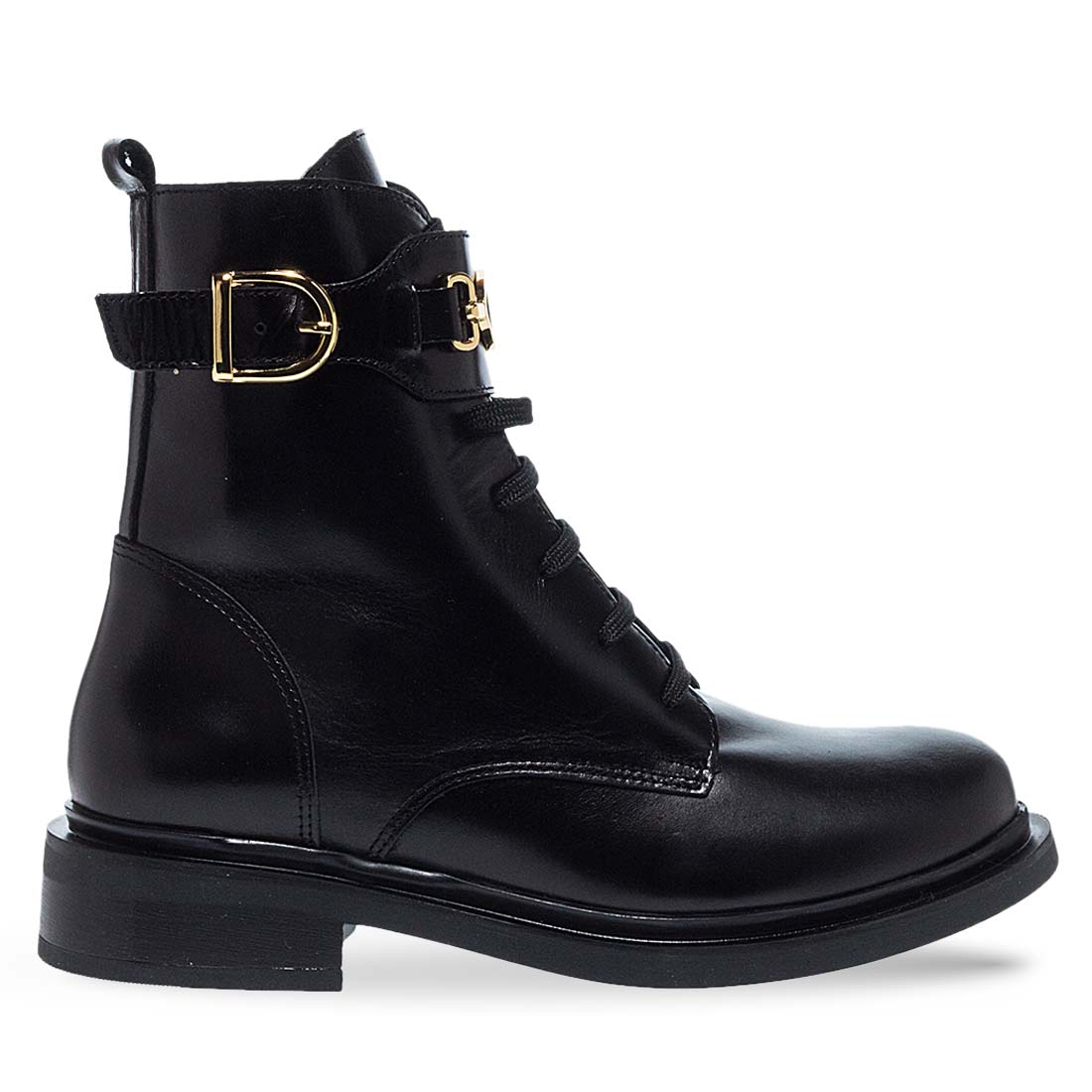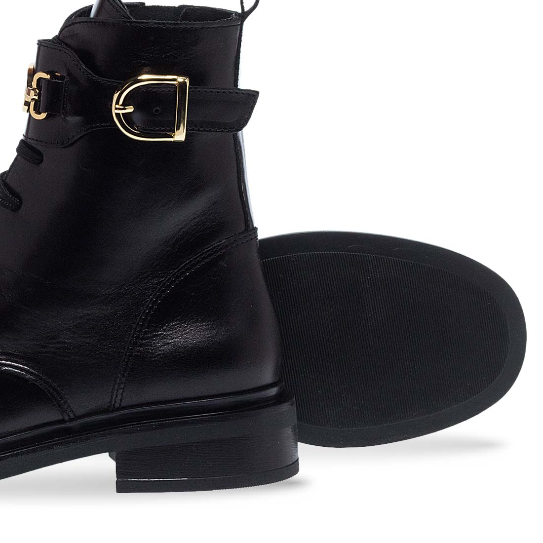 Γυναικεία μαύρα μποτάκια Maison Minrelle για να σας χαρίσουν άνετα βήματα σε κάθε στιγμή της ημέρας. Δένουν με κορδόνια και κλέισιμο με φερμουάρ στο πλάι. Διαθέτουν σταθερή σόλα και μαλακό πάτημα. Γυναικεία μονόχρωμα μποτάκια που ξεχωρίζουν για τις χρυσές λεπτομέρειες και θα ανανεώσουν το στιλ σας.
