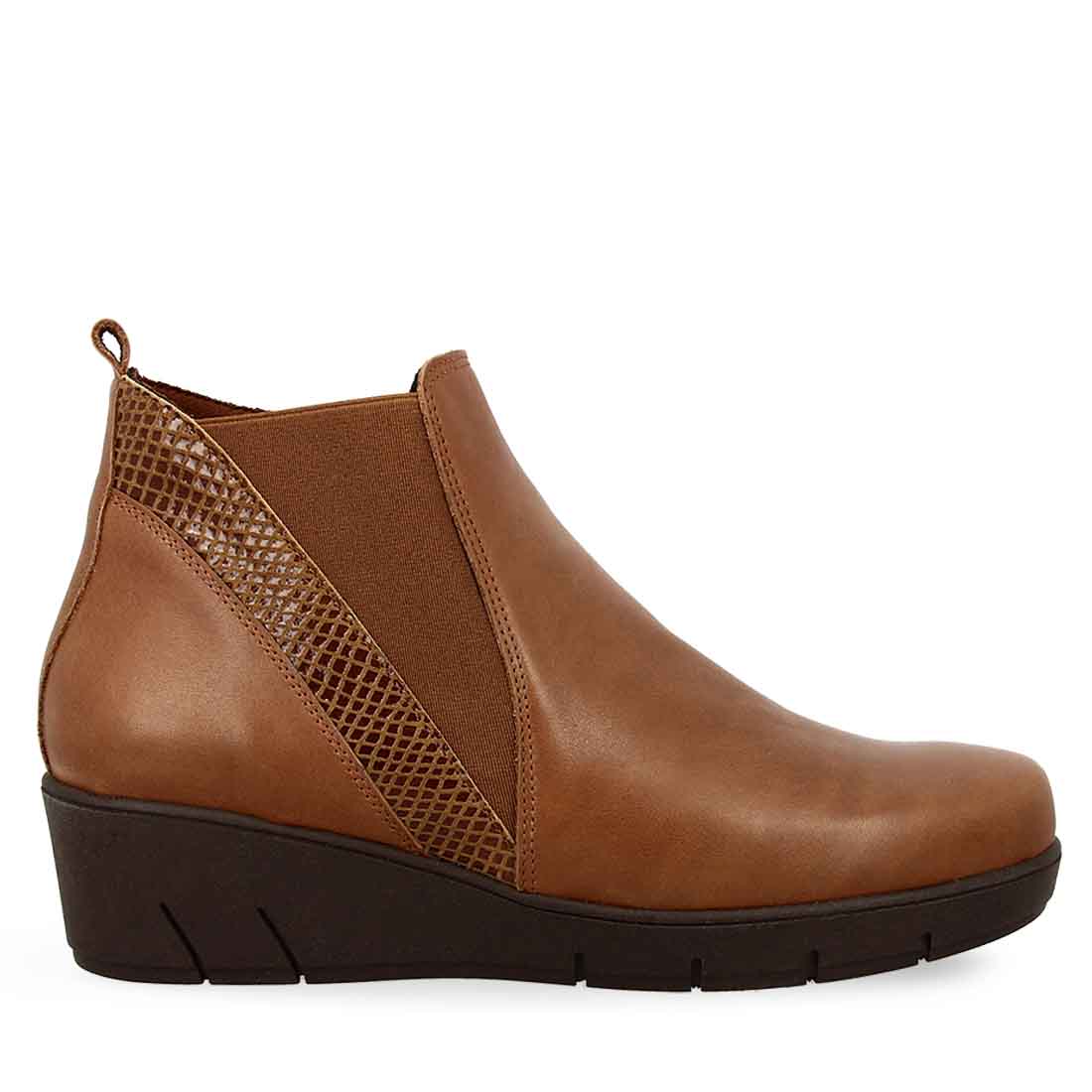 Μποτάκι δερμάτινο ελληνικής κατασκευής με λάστιχα και φερμουάρ στα πλαϊινά για εύκολη εφαρμογή. Σόλα ανατομικού τύπου ,αντιολισθητική και πάτος εξαιρετικά μαλακός.
