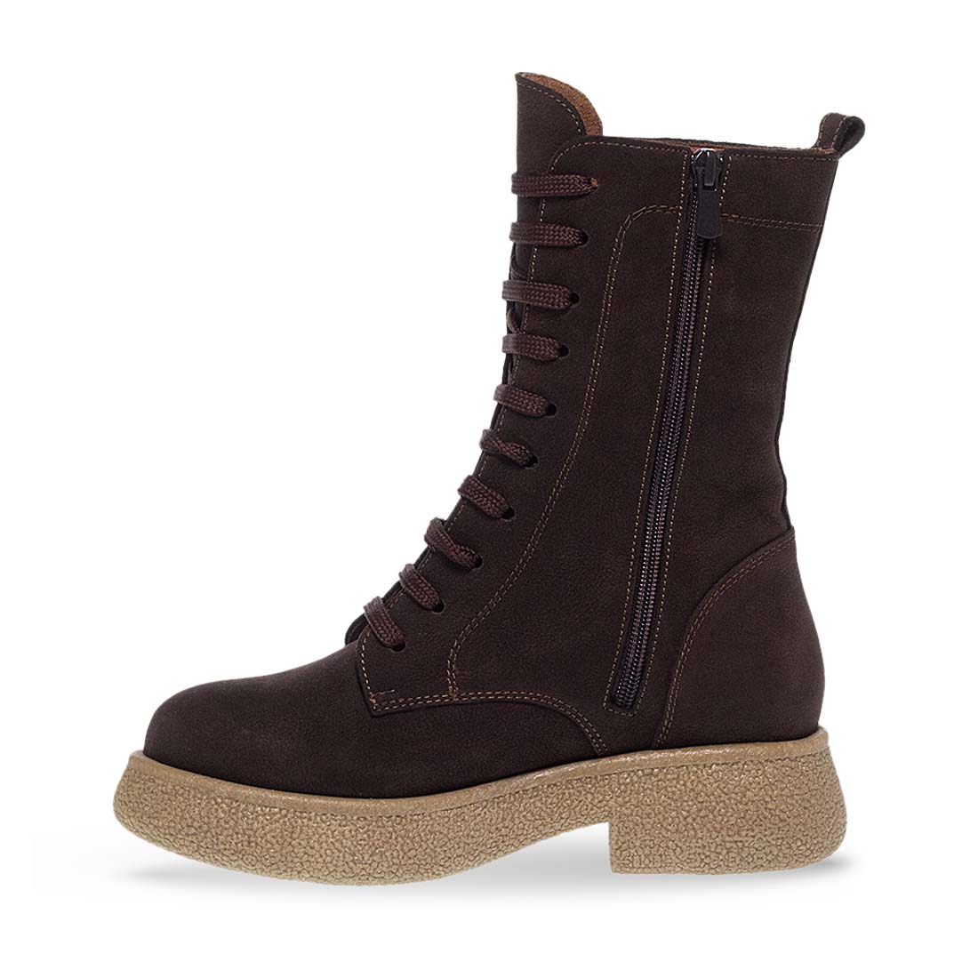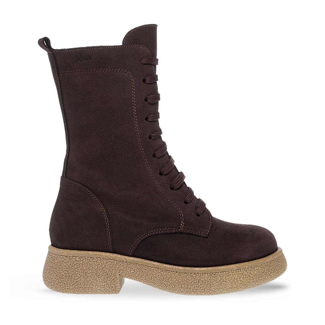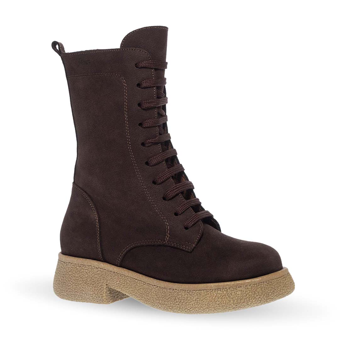 Γυναικεία δερμάτινα μποτάκια που δένουν σε κορδόνια,σε 5 μοντέρνα χρώματα. Δερμάτινο αναπαυτικό πάτημα και υπερυψωμένη σόλα με τρακτερωτό τελείωμα.