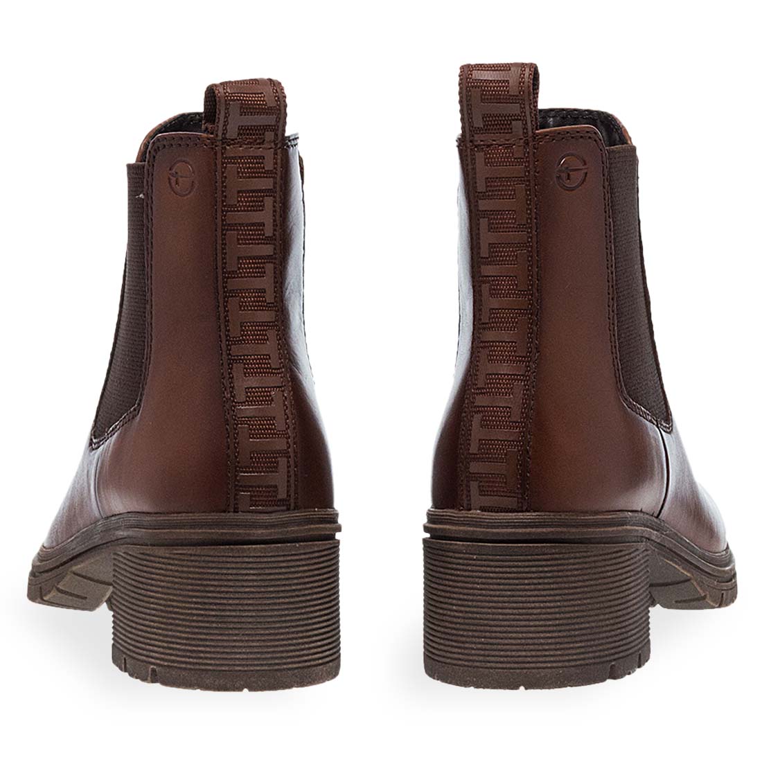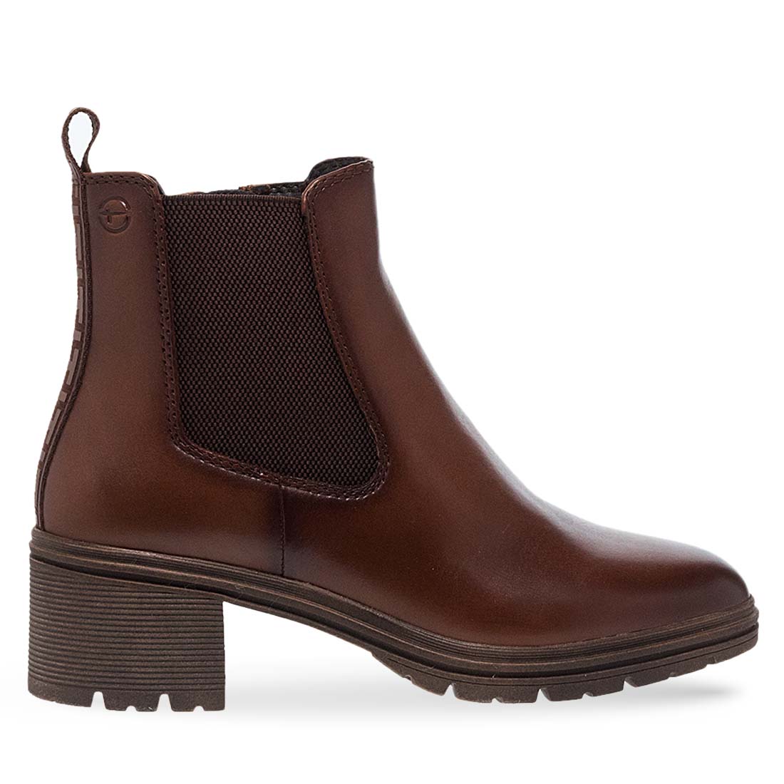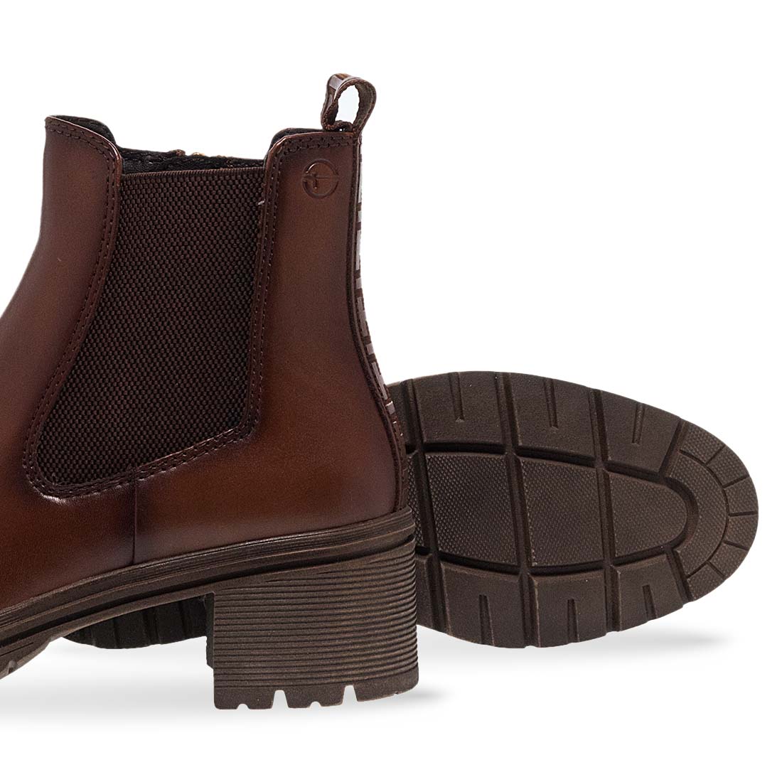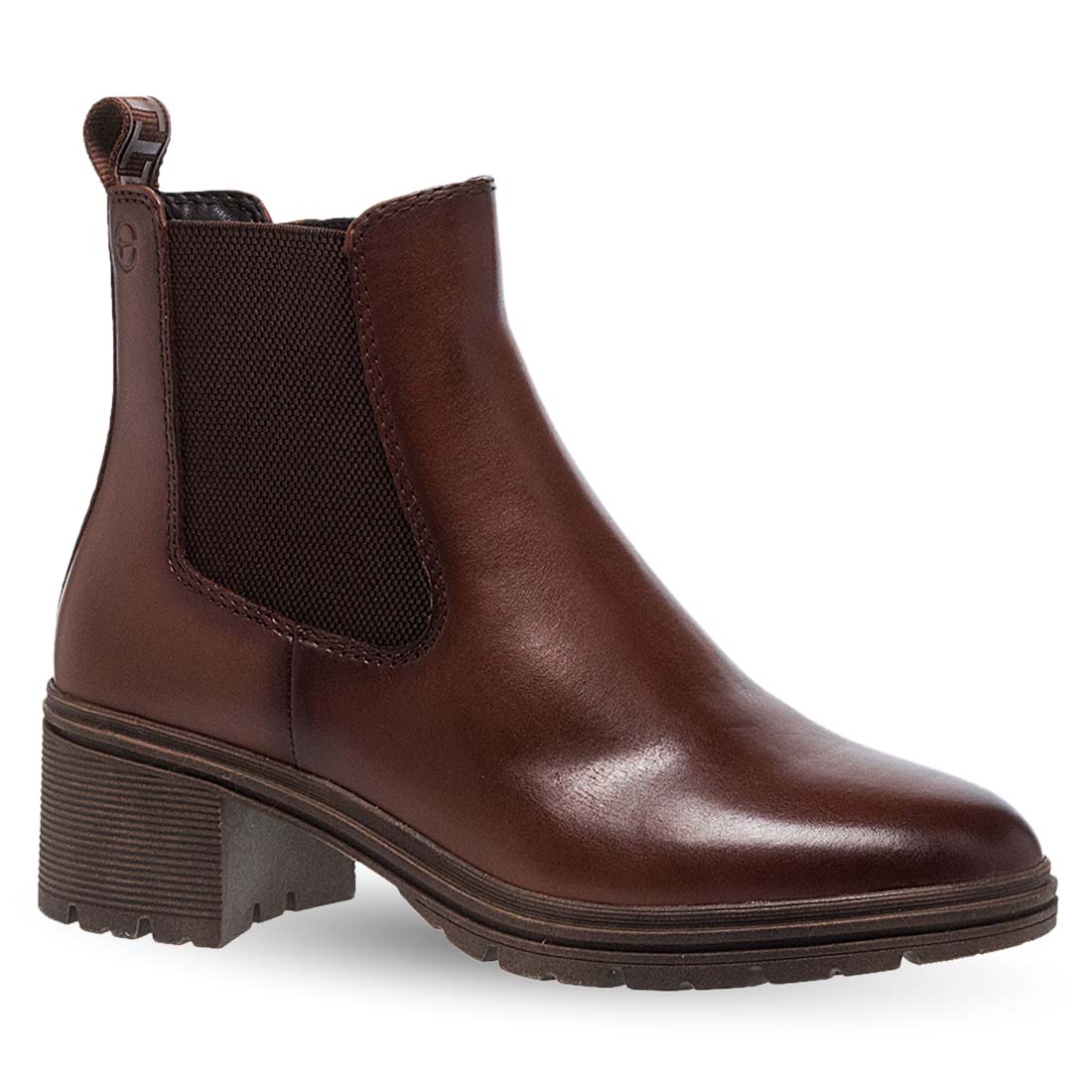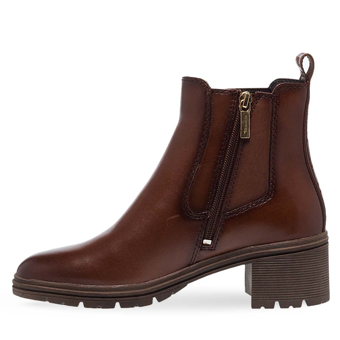 Γυναικεία δερμάτινα μποτάκια από το brand Tamaris. Καφέ γυναικείο μποτάκι με χοντρό τακούνι και φερμουάρ στο πλάι. Κομψό και άνετο για καθημερινές εμφανίσεις.