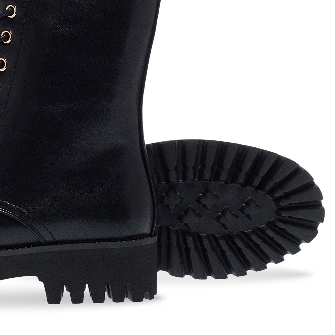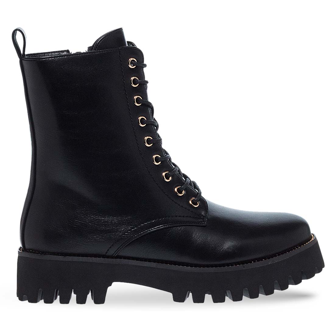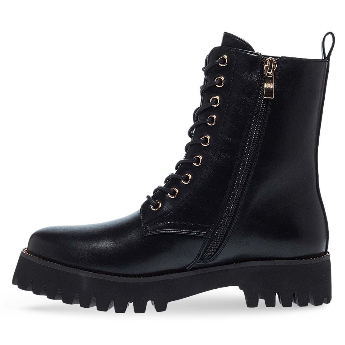 Μαύρα χειμερινά μποτάκια Exe σε ορειβατικό στιλ. Δένουν με κορδόνια. Μαλακό πέλμα και τρακτερωτή σόλα για σταθερά βήματα. Αυτά τα γυναικεία μποτάκια θα ανανεώσουν τη χειμερινή σας γκαρνταρόμπα. Ανθεκτικά και μαλακά για καθημερινή χρήση.