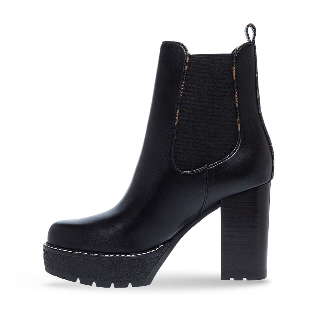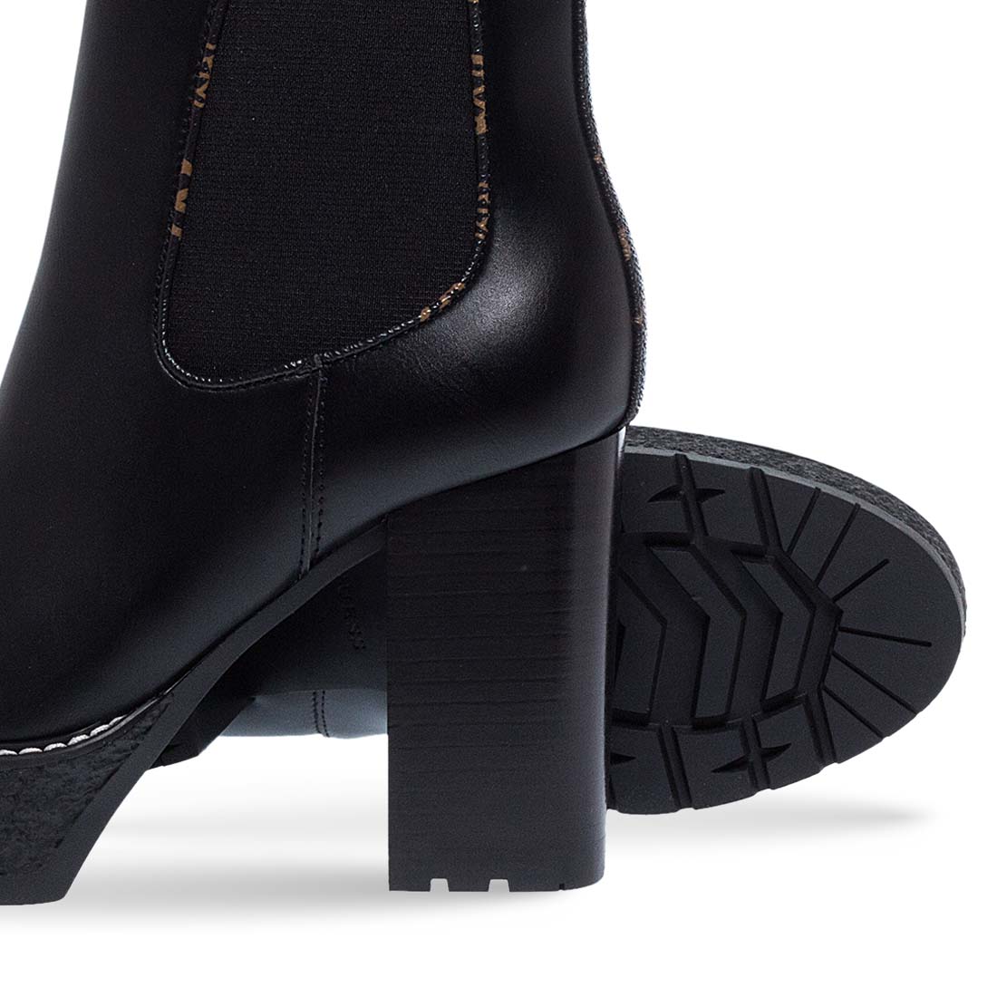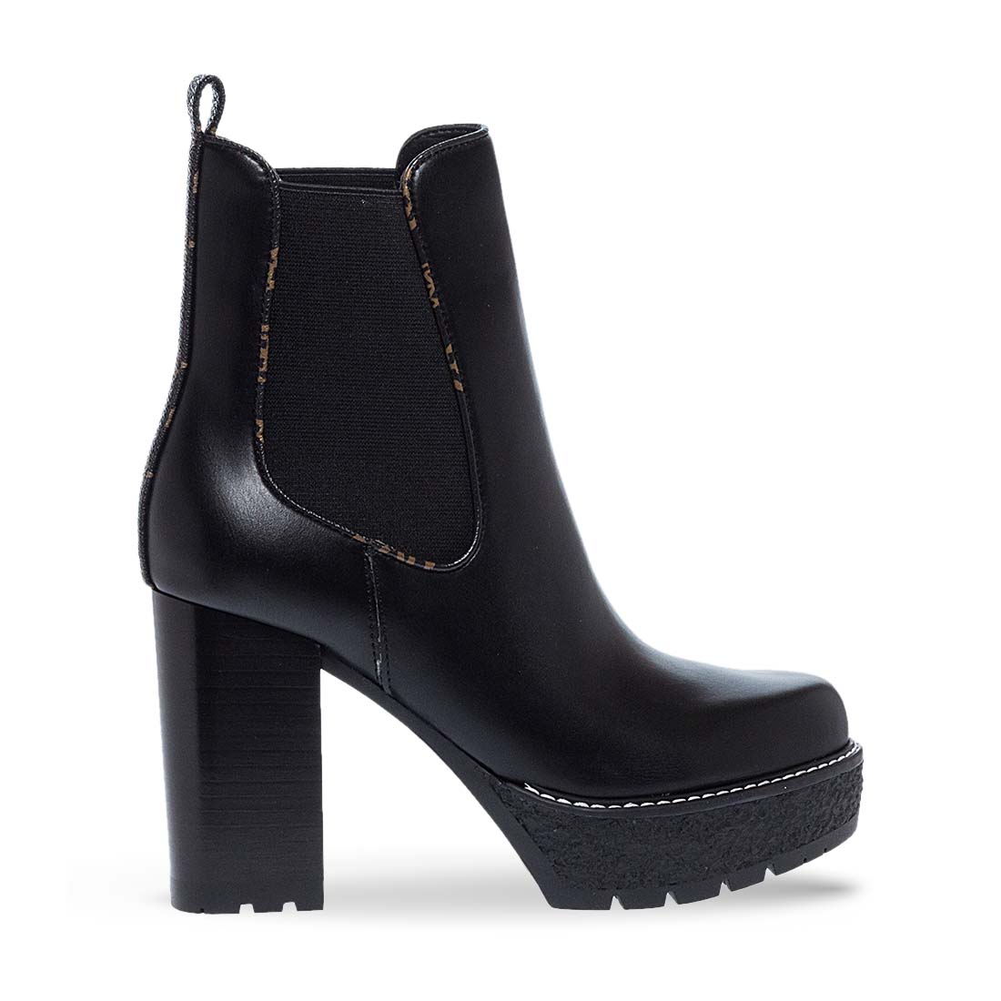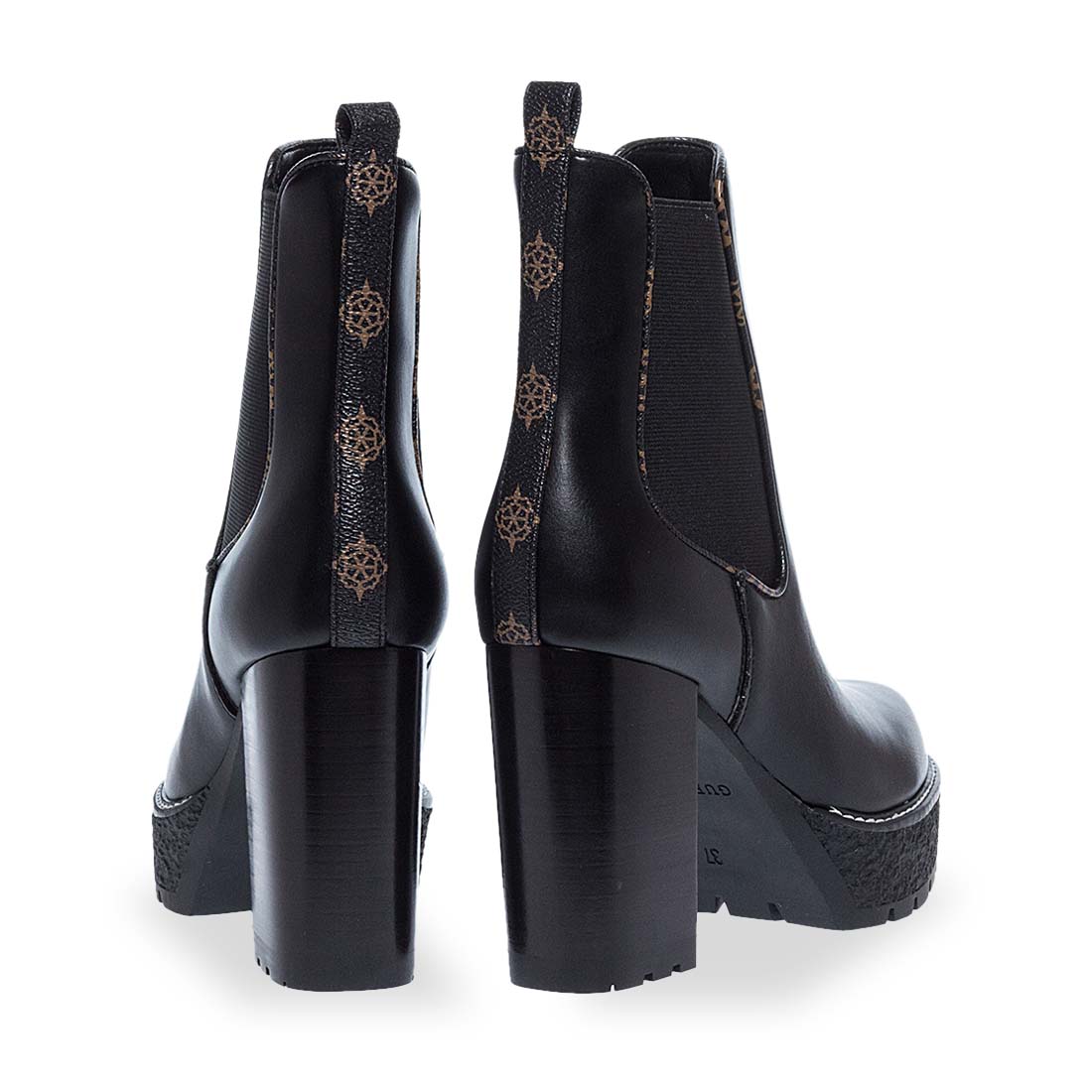 Γυναικεία μποτάκια Guess. Εντυπωσίασε σε κάθε βήμα σου με αυτά τα γυναικεία μποτάκια από την νέα συλλογή της Guess. Συνθετικό δέρμα εξαιρετικής ποιότητας. Διαθέσιμα σε μαύρο χρώμα, ελαστικά πλαινά για εύκολη εφαρμογή. Μαλακό πέλμα και σταθερή σόλα με ψηλό block τακούνι. Λεπτομέρεια με το λογότυπο στο πίσω μέρος.
