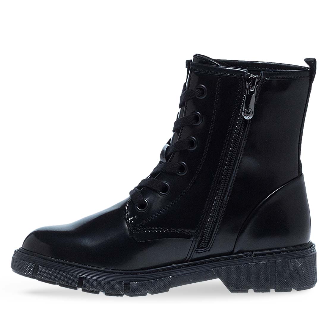 Γυναικεία μποτάκια Marco Tozzi. Πρόσθεσε λίγη λάμψη στο look σου με αυτό το ζευγάρι γυναικεία αρβυλάκια της εταιρίας Marco Tozzi. Είναι κατασκευασμένα από λουστρίνι με γυαλιστερό φινίρισμα. Διαθέτουν φερμουάρ για εύκολη εφαρμογή και κορδόνια για να προσαρμόζονται κατάλληλα στο πόδι. Μαλακός πάτος και σταθερή τρακτερωτή σόλα.