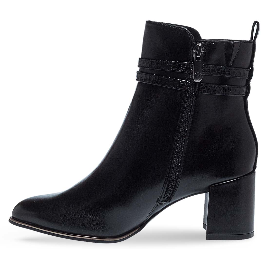 Κομψά μαύρα μποτάκια από το brand Marco Tozzi. Κλείσιμο με φερμουάρ για τέλεια εφαρμογή. Γυναικεία μποτάκια ιδανικά για καθημερινά βήματα. Έχουν σχεδιαστεί από συνθετικό δέρμα υψηλής ποιότητας. Με λεπτά ζωνάκια περιμετρικά. Μια δημιουργία που θα αναβαθμίσει το στιλ σας.
