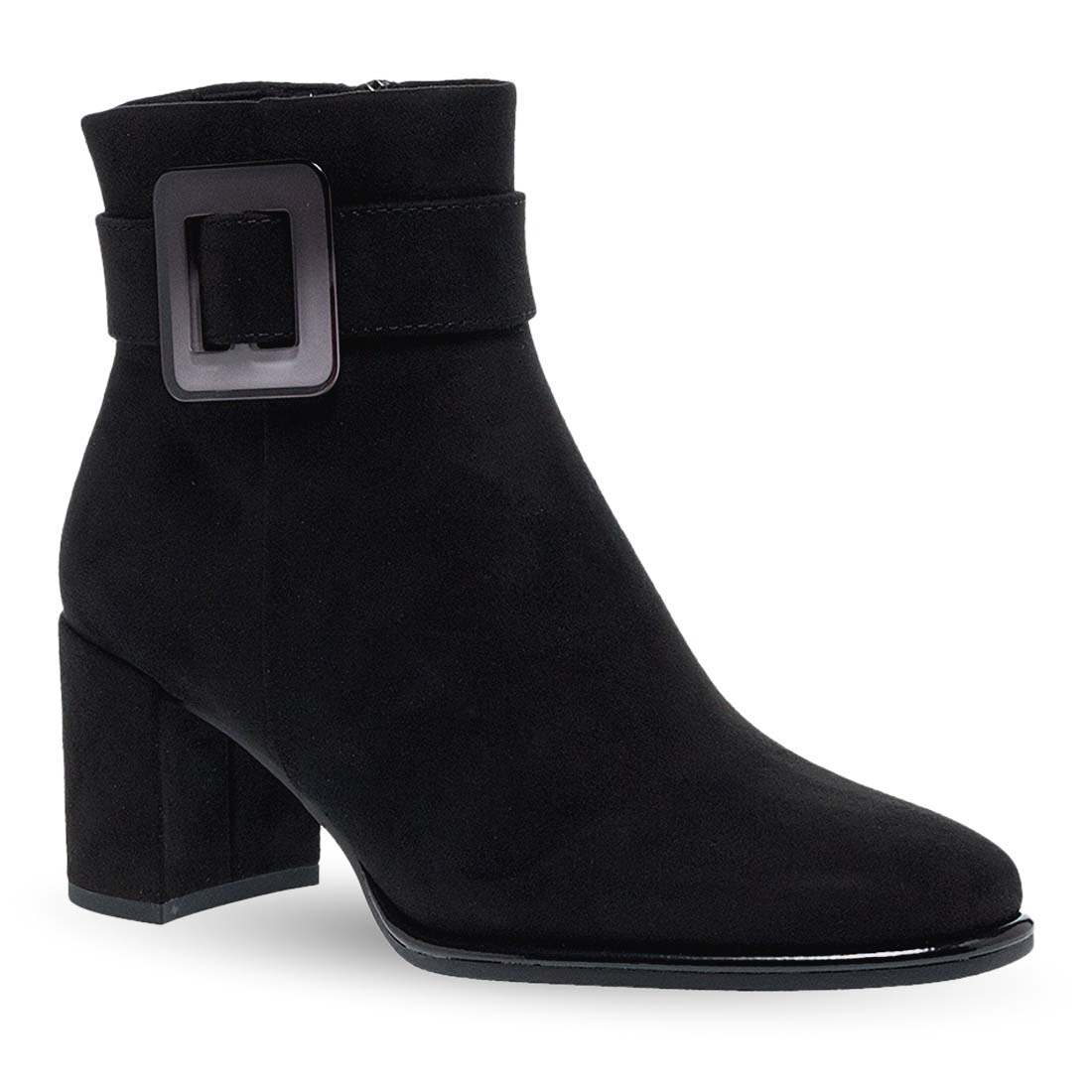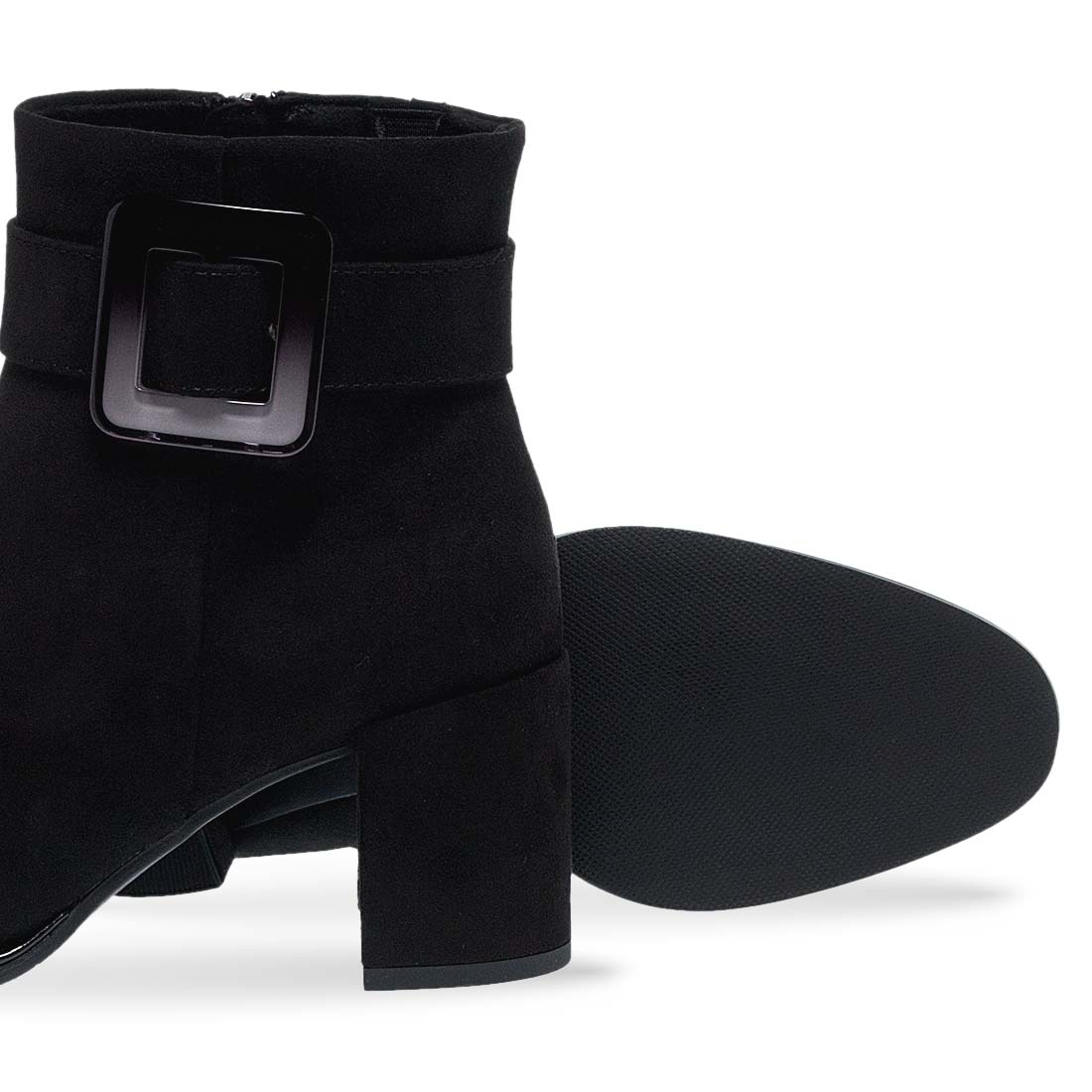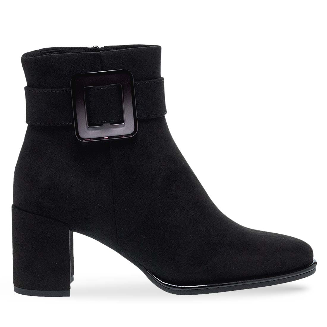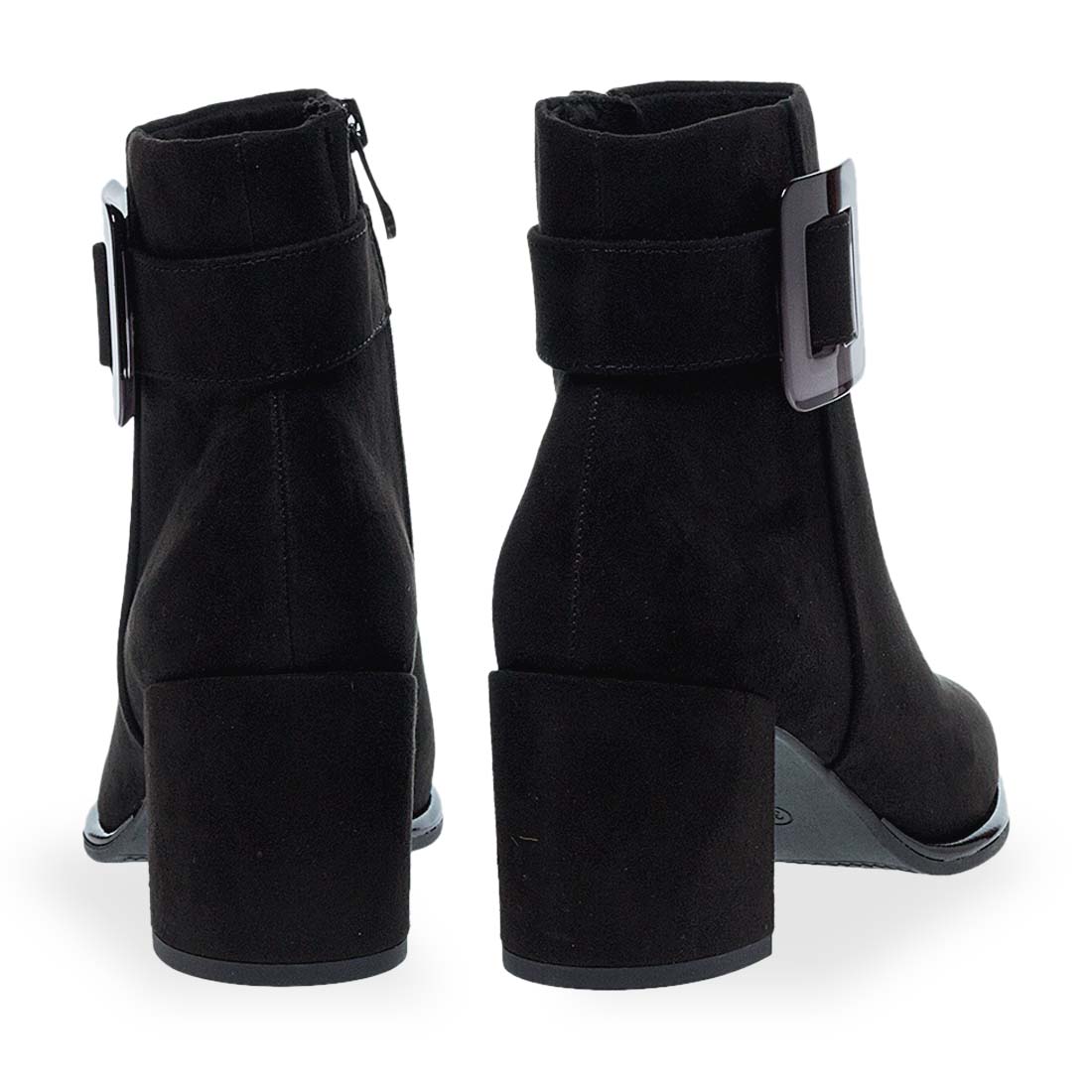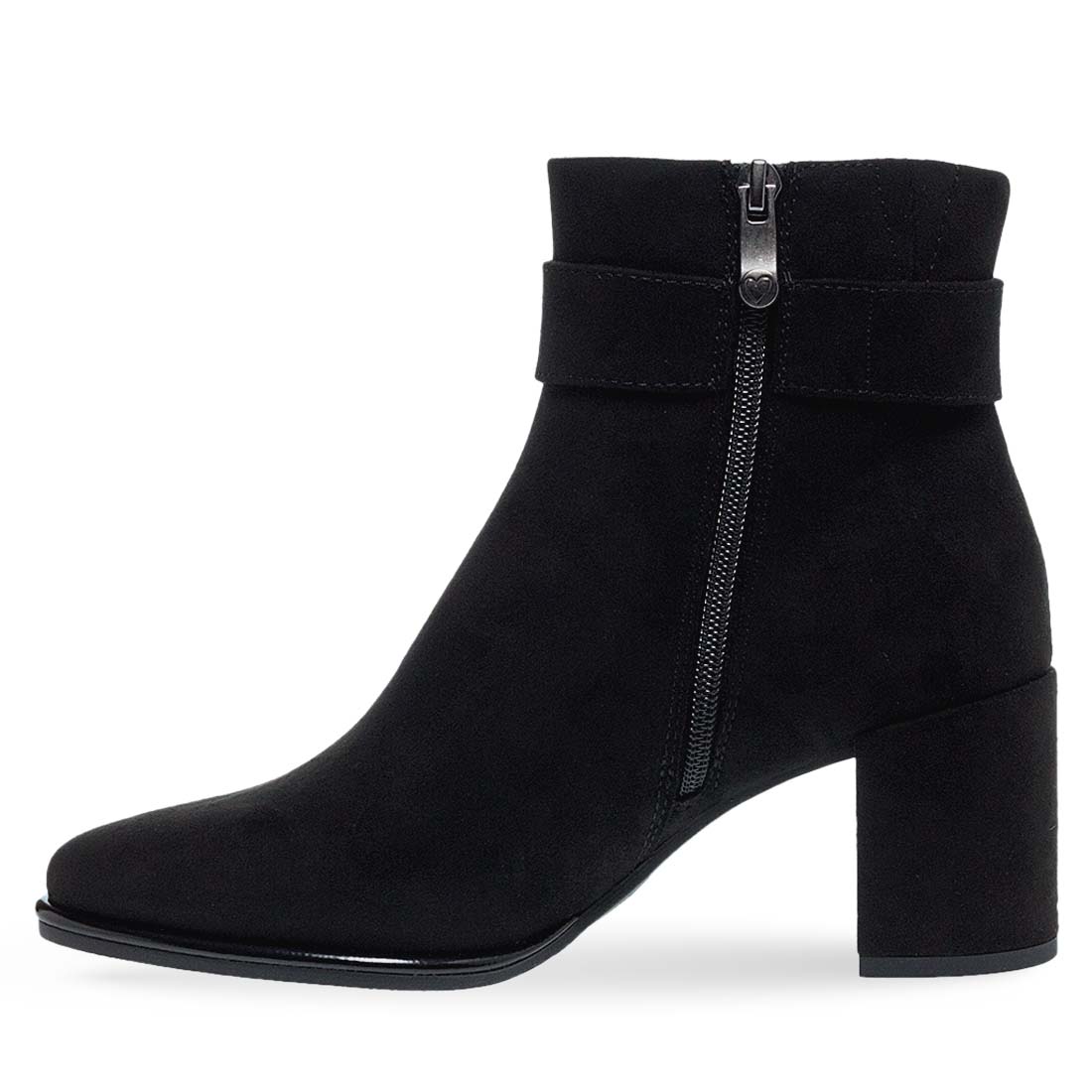Γυναικεία μποτάκια από το brand Marco Tozzi. Γυναικείο μαύρο suede μποτάκι με χοντρό τακούνι και φερμουάρ. Κομψό και διαχρονικό σχέδιο για όλες τις ώρες.