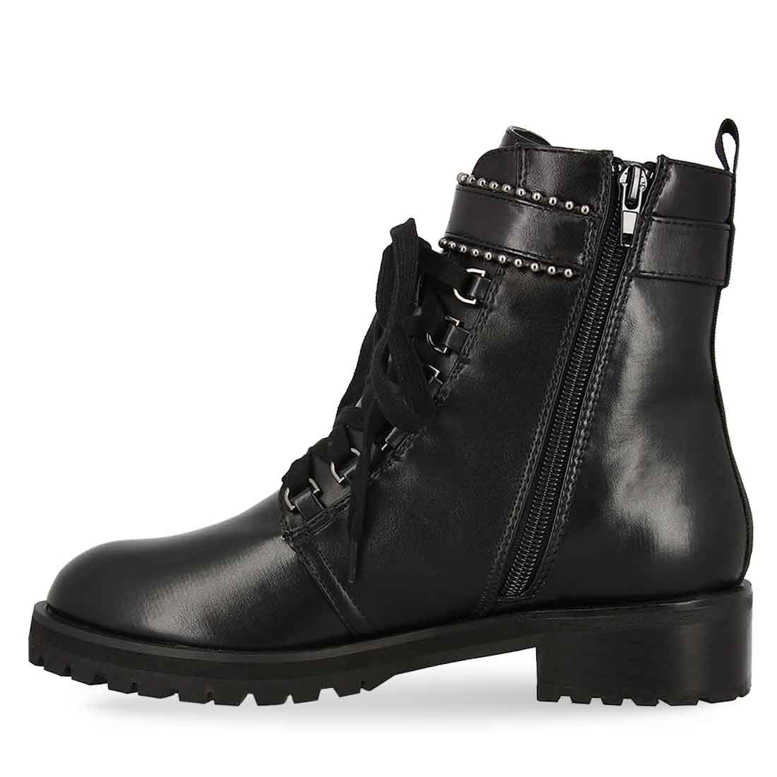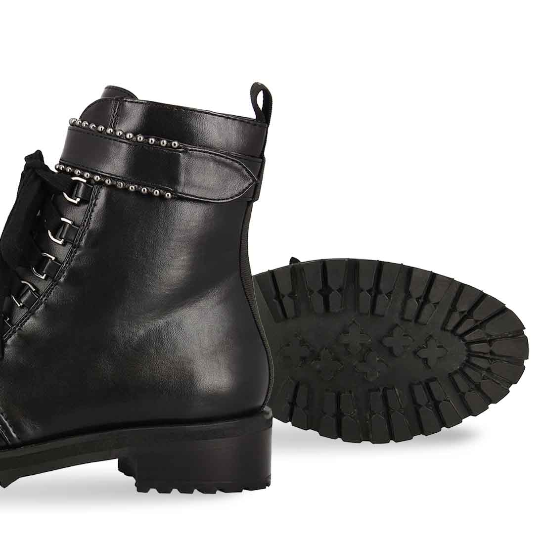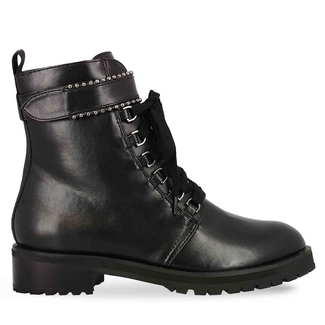 Αυτά θα γίνουν τα αγαπημένα σου μποτάκια. Σχέδιο με κορδόνια,τύπου αρβυλάκι. Διαθέτει λουράκι διακοσμητικό με τρουκς στο επάνω μέρος. Σχέδιο από συνθετικό δέρμα και υφασμάτινη εσωτερική επένδυση.Σόλα τρακτερωτη που δε γλιστράει. Εφαρμόζει εύκολα με φερμουάρ εσωτερικά.