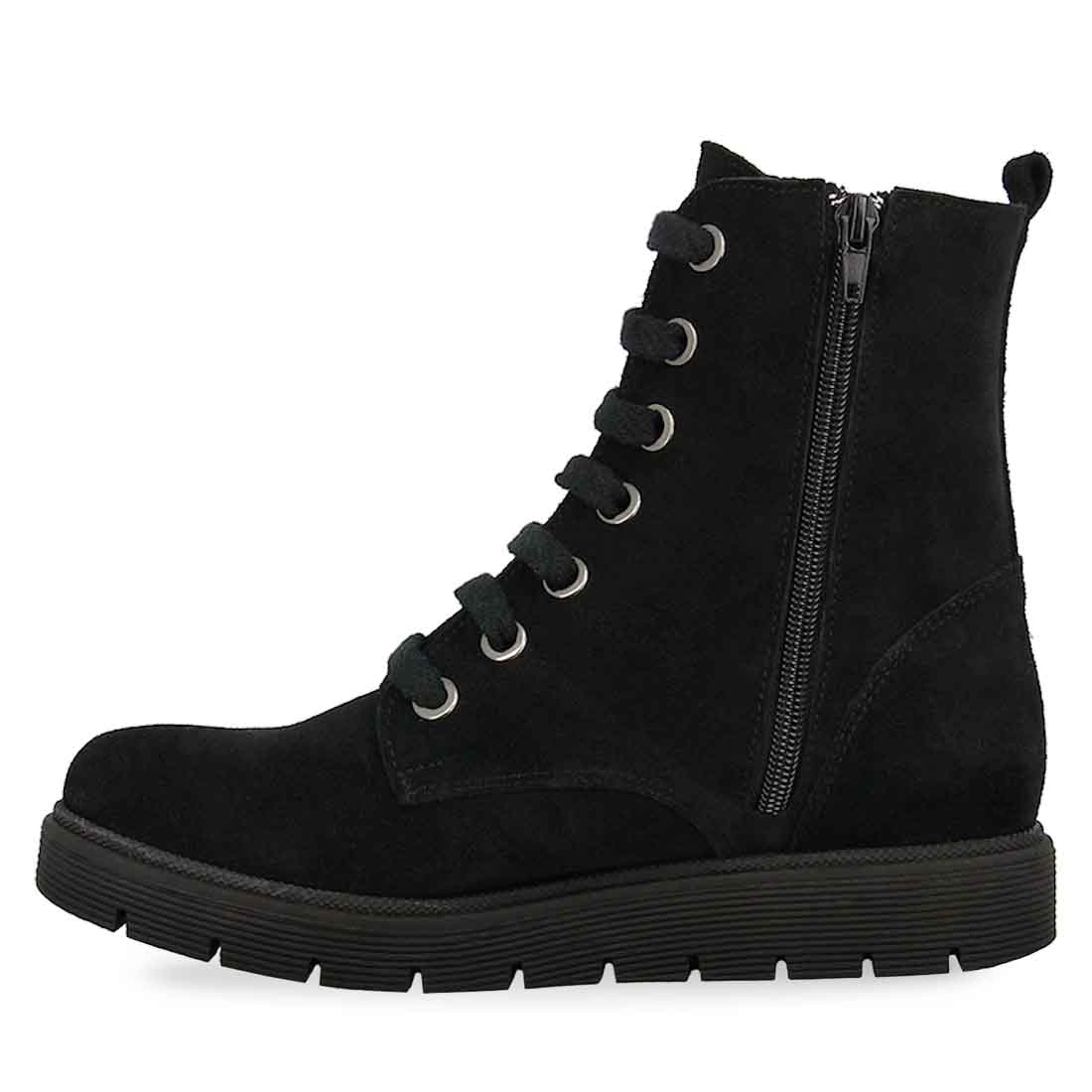 Διαχρονικό σχέδιο δερμάτινα suede μποτάκια που δεν πρέπει να λείπει από την συλλογή σας. Κλείσιμο με κορδόνια στο μπροστά μέρος,λειτουργικό φερμουάρ στην εσωτερική πλευρά και διακοσμητικό φερμουάρ εξωτερικά. Διαθέτουν δερμάτινο μαλακό πάτο.