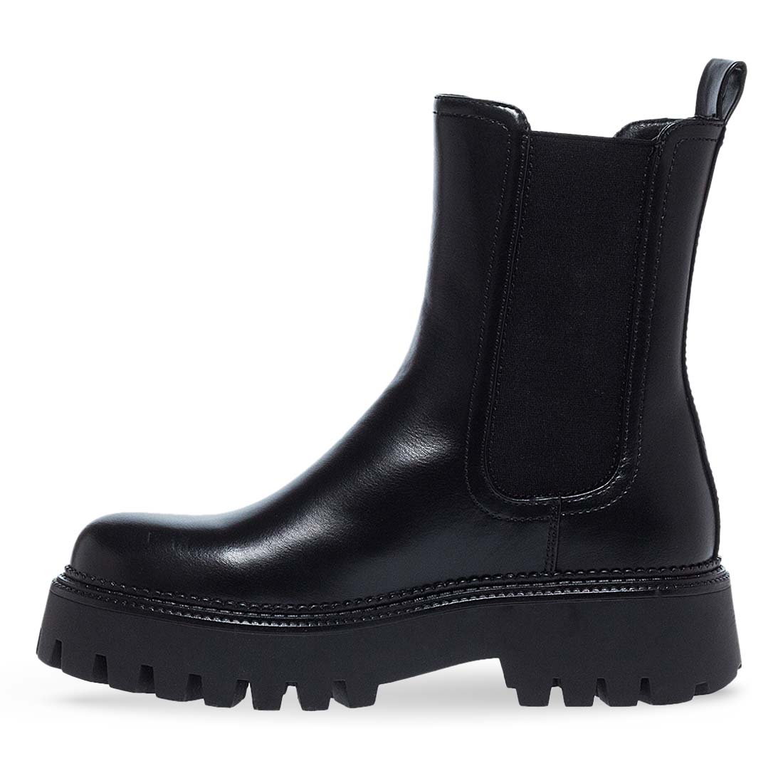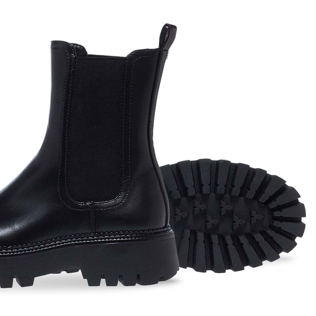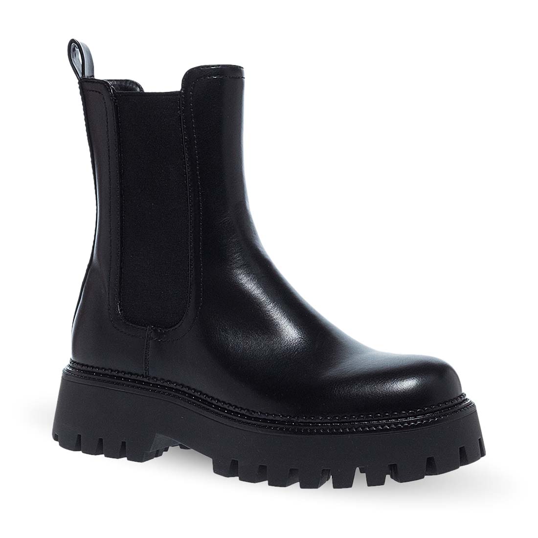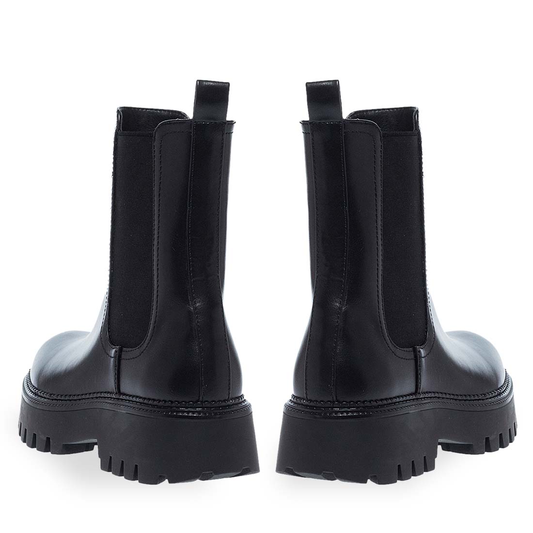 Μαύρα γυναικεία μποτάκια Parex τύπου chelsea με τρακτερωτή σόλα. Κατασκευασμένα από συνθετικό δέρμα άριστης ποιότητας. Με λάστιχα στα πλαινά για εύκολη εφαρμογή και θηλιά στο πίσω μέρος. Μοντέρνος και μονόχρωμος σχεδιασμός.