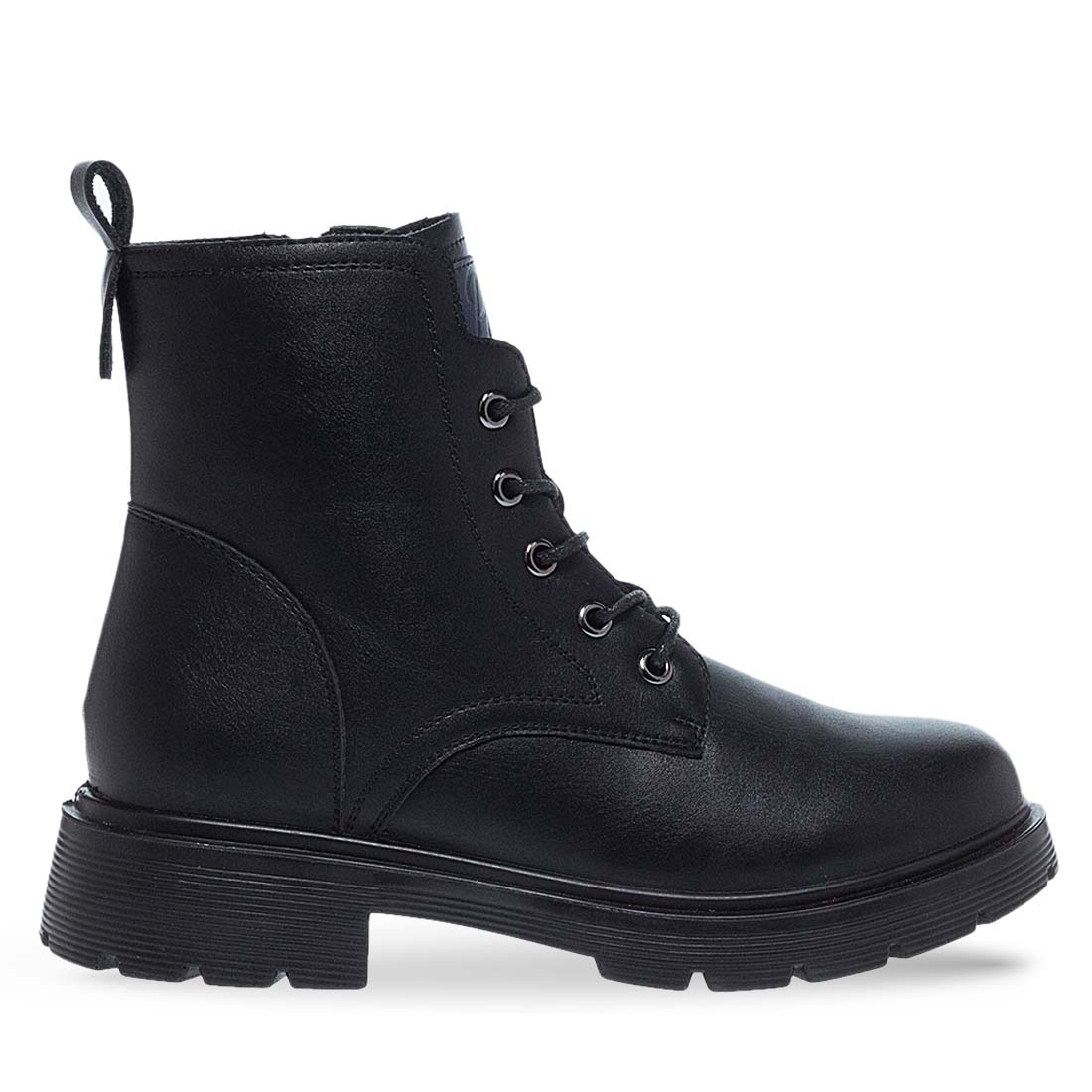 Μαύρα γυναικεία μποτάκια από τη νέα συλλογή της εταιρείας Parex σε ορειβατικό στιλ. Δέσιμο με κορδόνια και φερμουάρ στο πλάι για εύκολη εφαρμογή. Τρακτερωτή σόλα και πολύ μαλακός εσωτερικός πάτος. Ξεχώριστε στα καθημερινά σας βήματα με αυτά τα άνετα γυναικεία μποτάκια από την Parex.