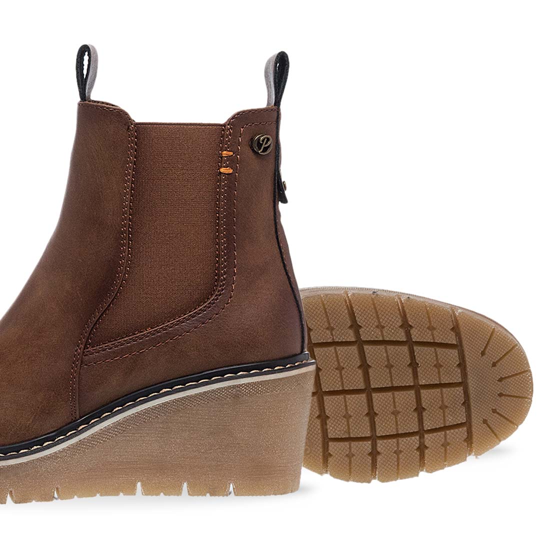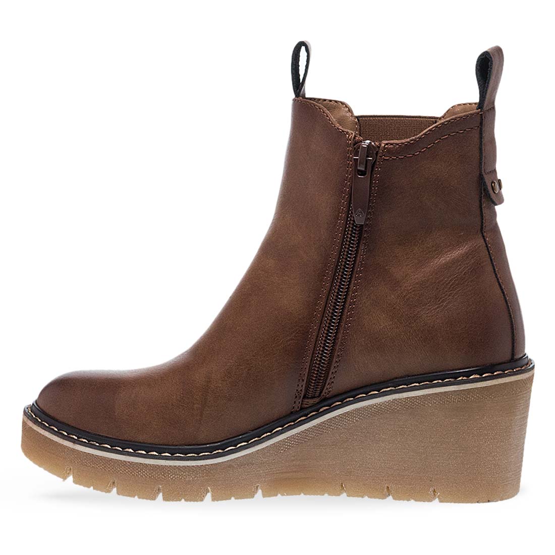 Γυναικεία μποτάκια Parex. Γυναικεία μποτάκια Parex με φερμουάρ και σφήνα τακούνι σε καφέ απόχρωση. Μοντέρνο σχέδιο που προσφέρει ύψος και άνεση. Τεχνολογία "Adapt" με αποσπόμενο πάτο για εξατομικευμένη άνεση. Σχεδιασμένο ώστε να μπορεί να αντικαθίσταται ή να αφαιρείται εύκολα, δίνοντας τη δυνατότητα να διαλέγεις κάθε φορά την εφαρμογή που σου ταιριάζει καλύτερα.