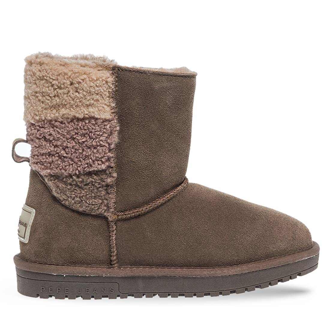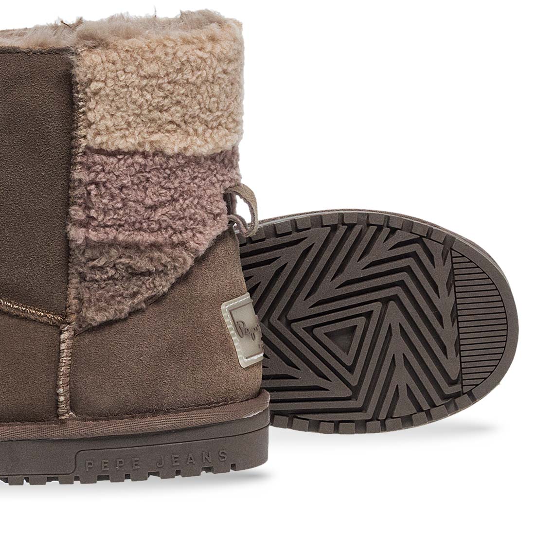 Υπέροχα γυναικεία μποτάκια Pepe Jeans τύπου Ugg για μοναδικές χειμερινές εμφανίσεις. Είναι σχεδιασμένα από δέρμα καστόρι και εσωτερικά διαθέτουν συνθετική γούνα. Διαθέτουν αντιολισθητική σόλα από καουτσούκ και μαλακό γούνινο πέλμα για ζεστά πόδια. Aνανεώστε τη χειμερινή σας γκαρνταρόμπα με αυτά τα φανταστικά, ανθεκτικά μποτάκια.
