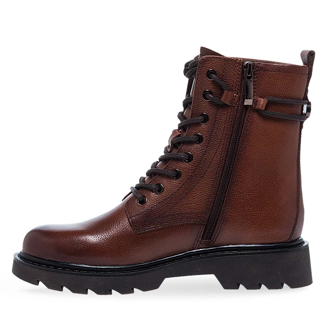 Γυναικεία μποτάκια από το brand Tamaris. Γυναικεία αρβυλάκια σε κονιάκ χρώμα, με κορδόνια και πλαϊνό φερμουάρ. Άνετα και ανθεκτικά για τον χειμώνα.