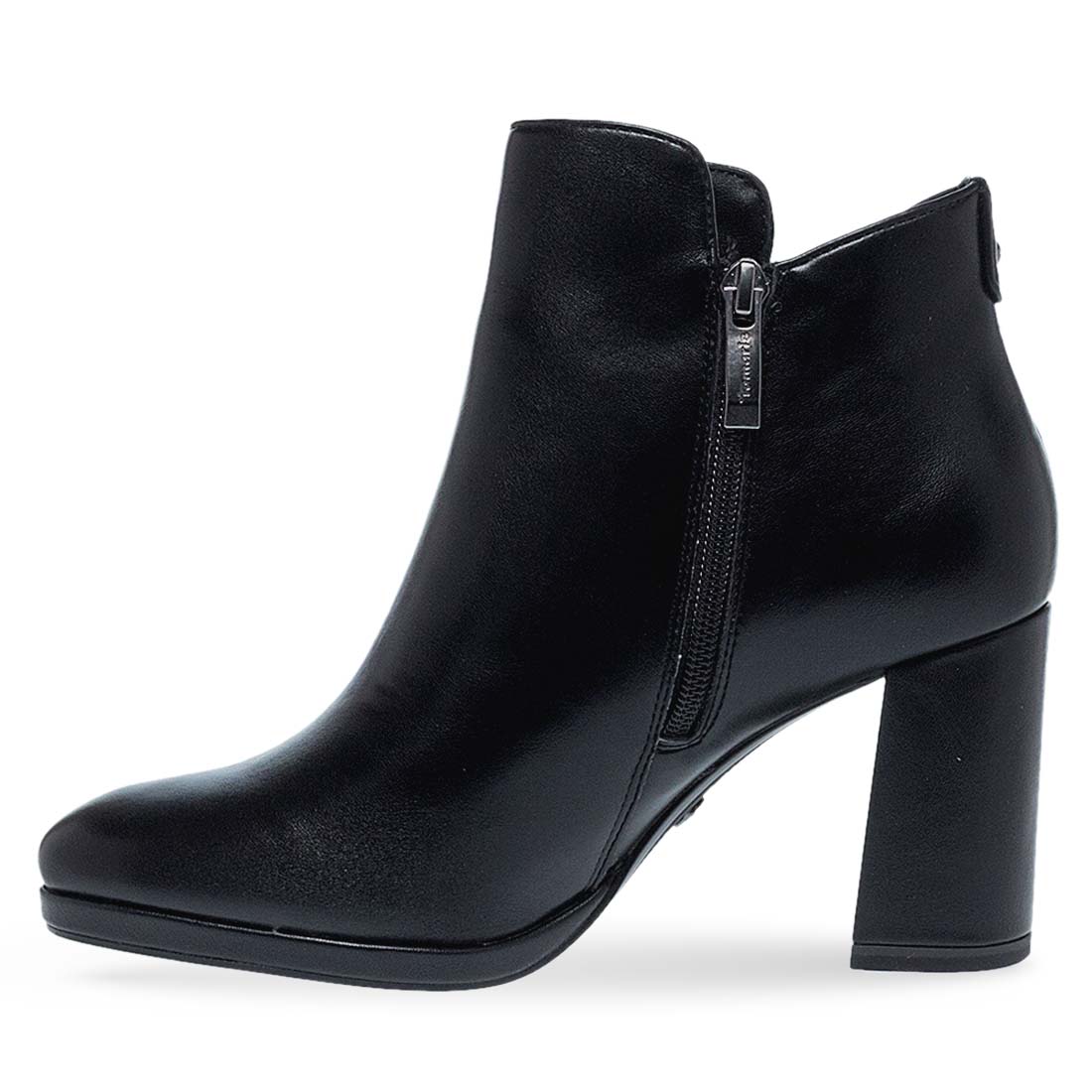 Γυναικεία μποτάκια από το brand Tamaris. Γυναικεία μποτάκια σε μαύρο χρώμα, με χοντρό τακούνι και φερμουάρ στο πλάι. Στιλάτα και άνετα για κομψές εμφανίσεις.
