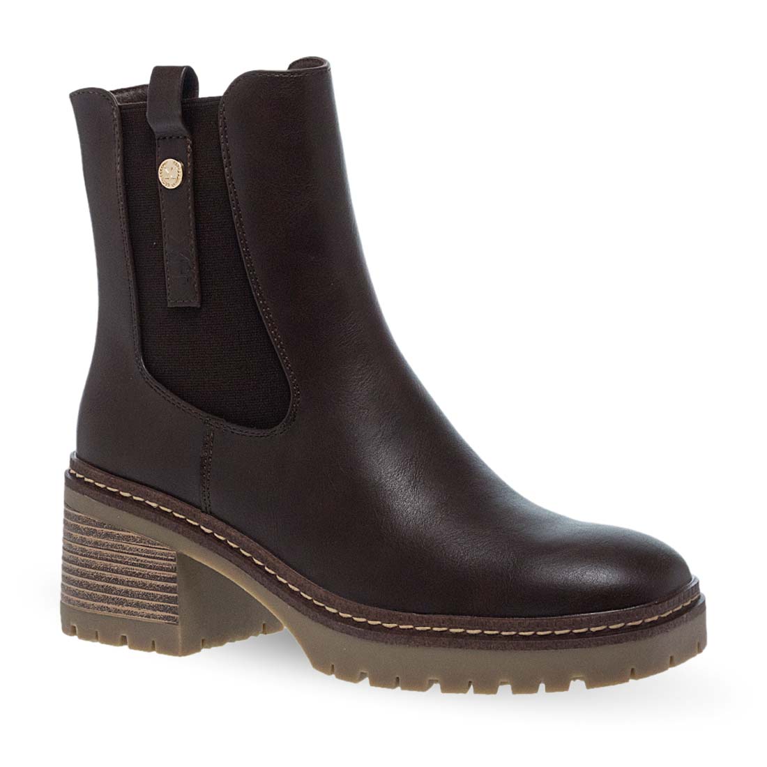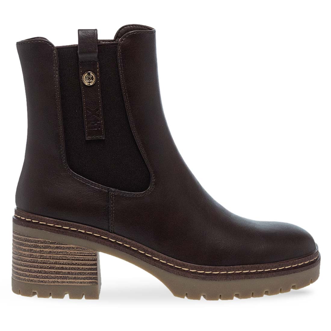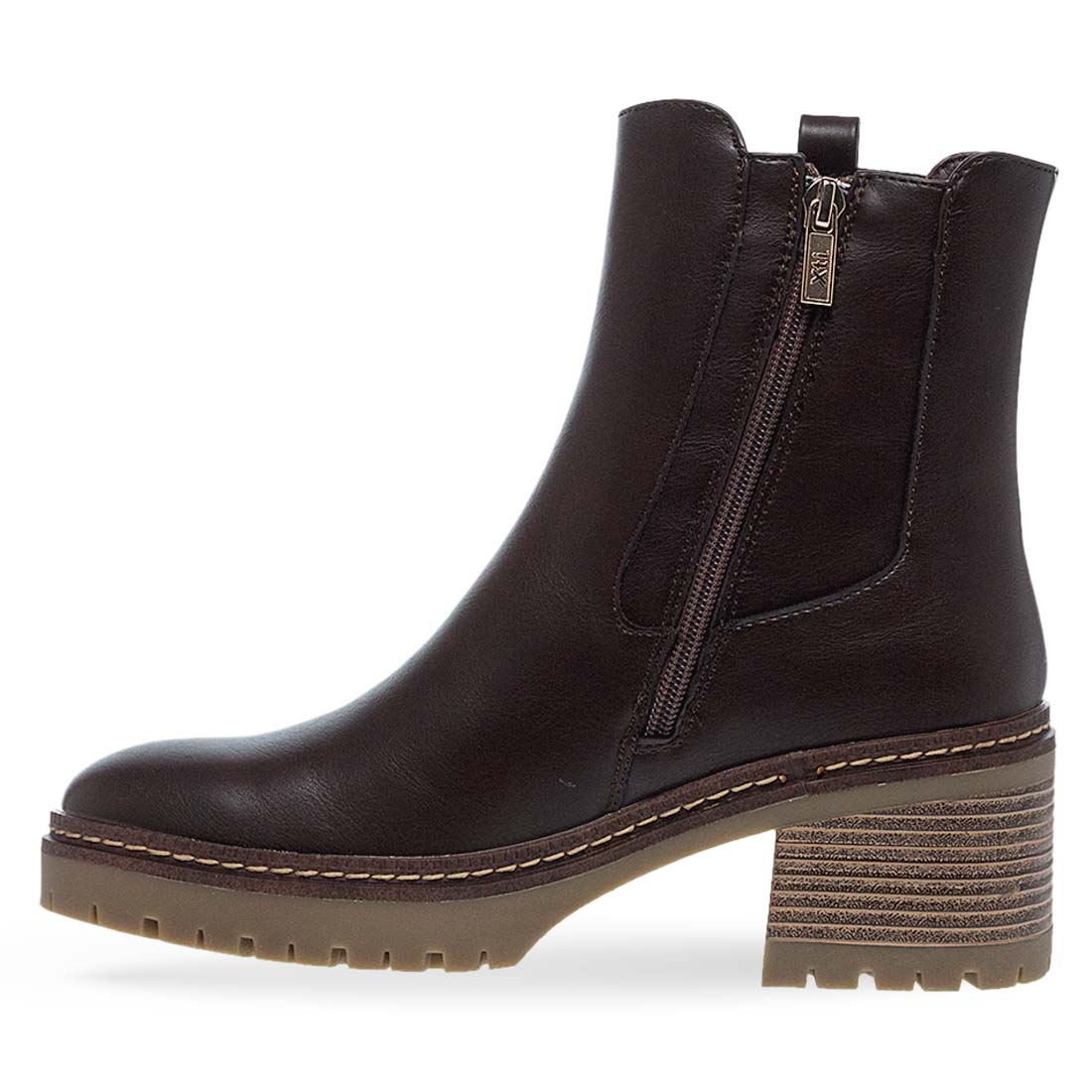 Γυναικεία μποτάκια από το brand Xti. Καφέ μποτάκι μεσαίου ύψους με φερμουάρ στο πλάι, χοντρό τακούνι και τρακτερωτή σόλα. Ιδανικό για στυλ και άνεση.