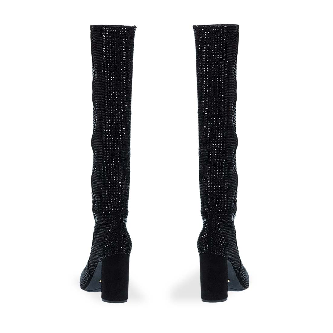 Γυναικείες μπότες από το brand Mexx. Μαύρη μπότα over-the-knee με γκλίτερ για εντυπωσιακές εμφανίσεις. Ψηλό τακούνι και φερμουάρ στο πλάι για εύκολη εφαρμογή.