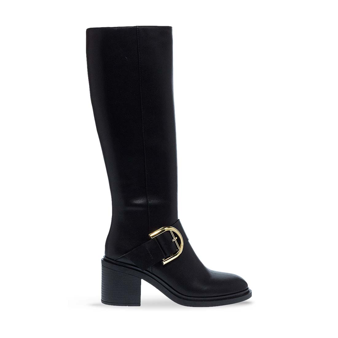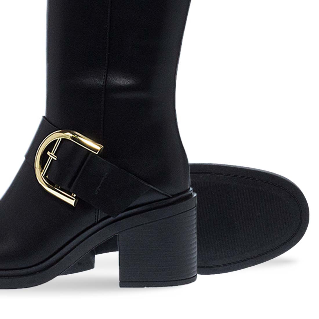 Μαύρες γυναικείες μπότες Parex με μοντέρνο σχεδιασμό. Διαθέτουν διακοσμητικό ζωνάκι με χρυσή λεπτομέρεία. Άνετη γυναικεία μπότα από συνθετικό δέρμα άριστης ποιότητας. Με μεσαίο ύψος τακουνιού. Ένας τέλειος συνδιασμός άνεσης και στιλ για να σας προσφέρουν κομψές εμφανίσεις.