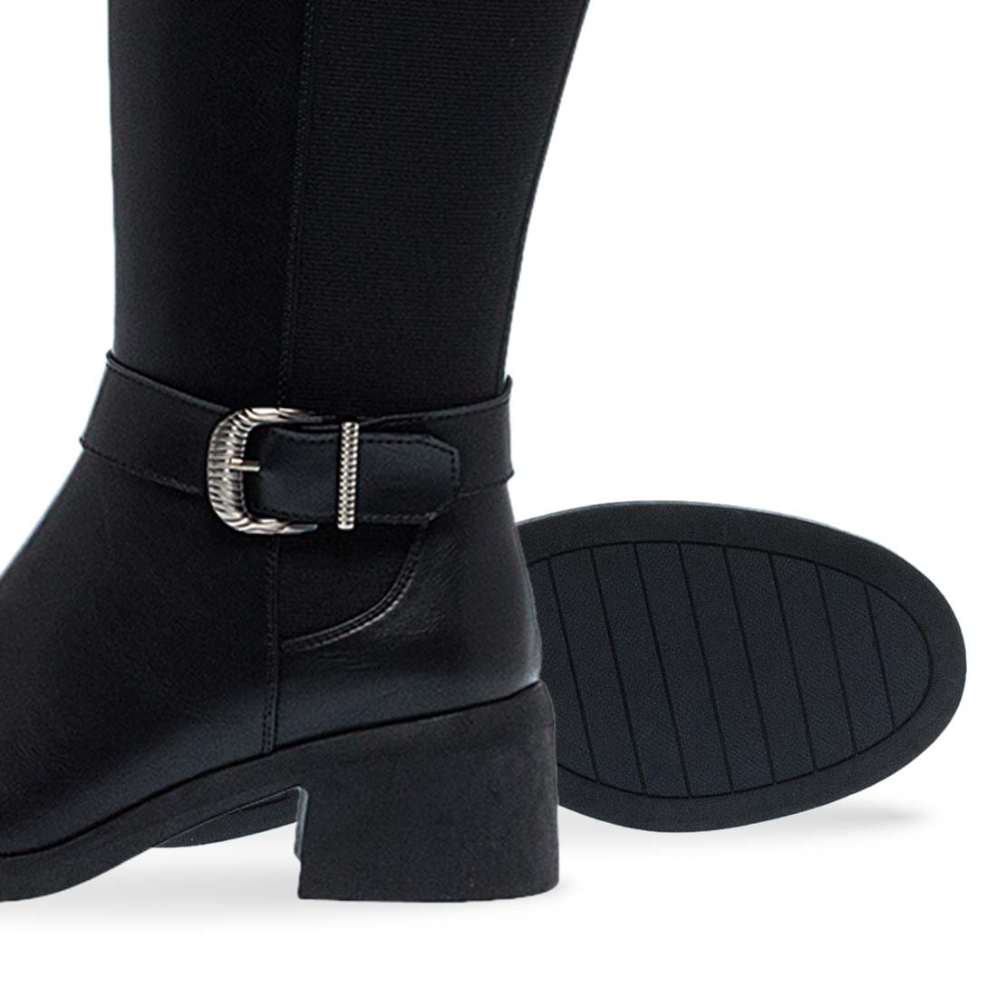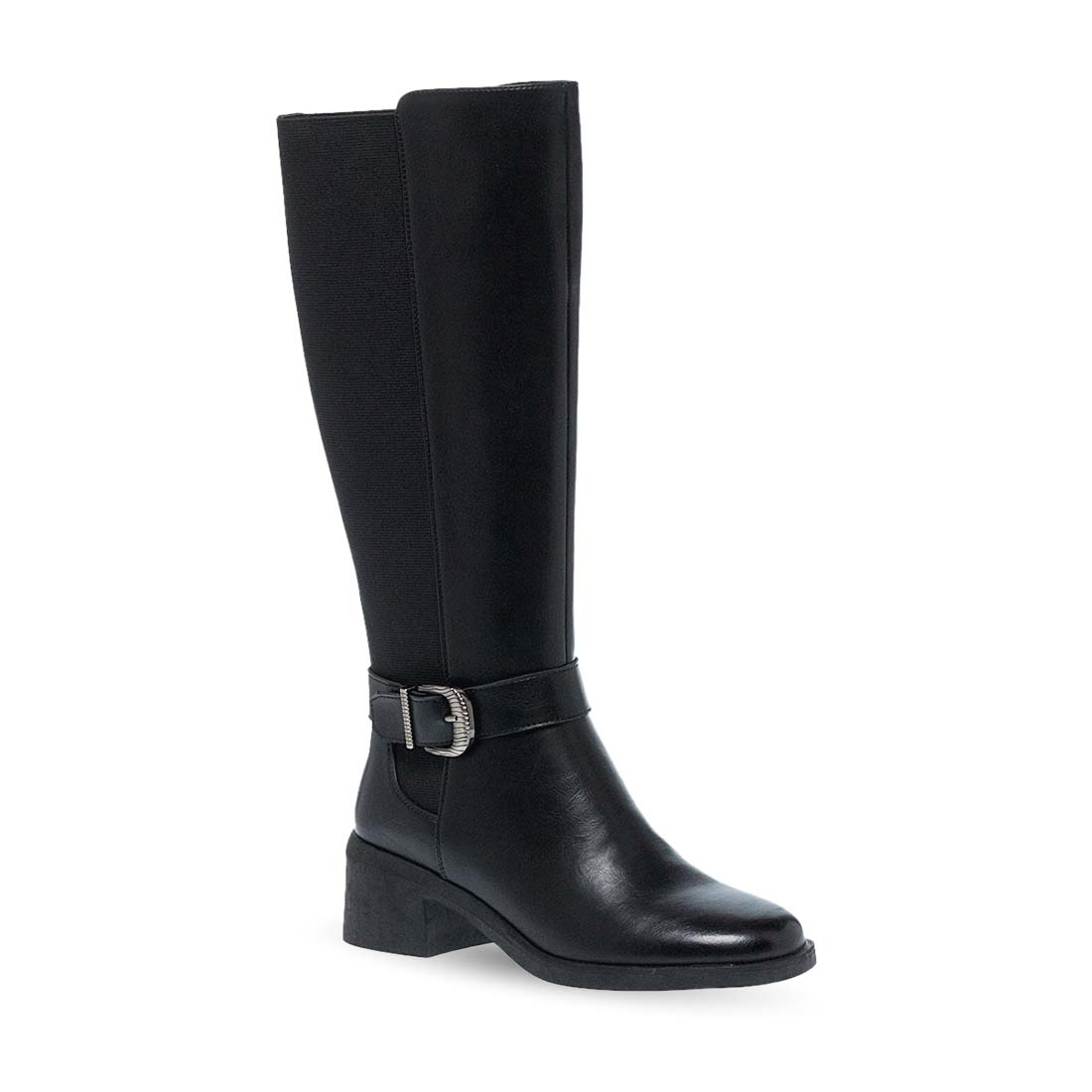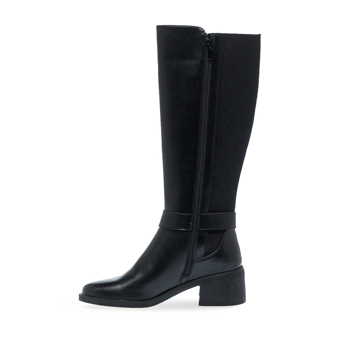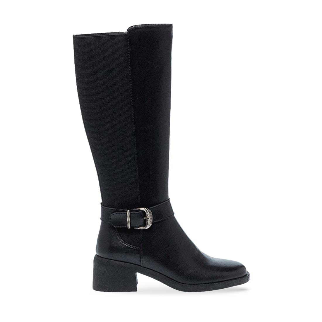 Γυναικείες μπότες Parex. Ψηλή γυναικεία μπότα σε μαύρο χρώμα με χαμηλό τακούνι και φερμουάρ. Κομψή και πρακτική επιλογή για τον χειμώνα.