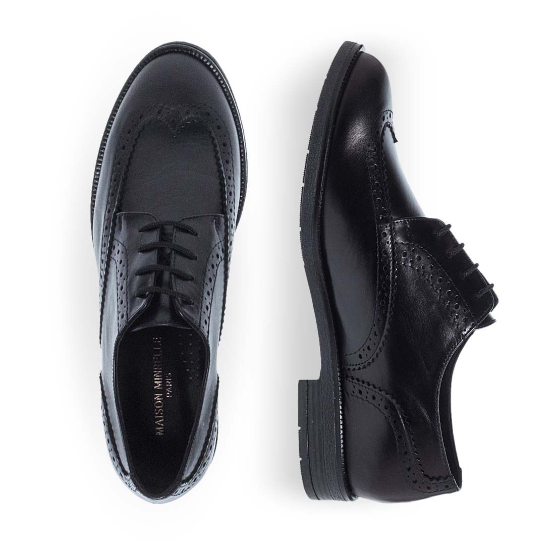 Επενδύστε στο καθημερινό σας στιλ με αυτά τα δερμάτινα oxford παπούτσια από τη νέα συλλογή Maison Minrelle. Μαύρα, γυναικεία oxford παπούτσια με κορδόνια και brogue λεπτομέρειες. Άνετα παπούτσια από ποιοτικά υλικά.