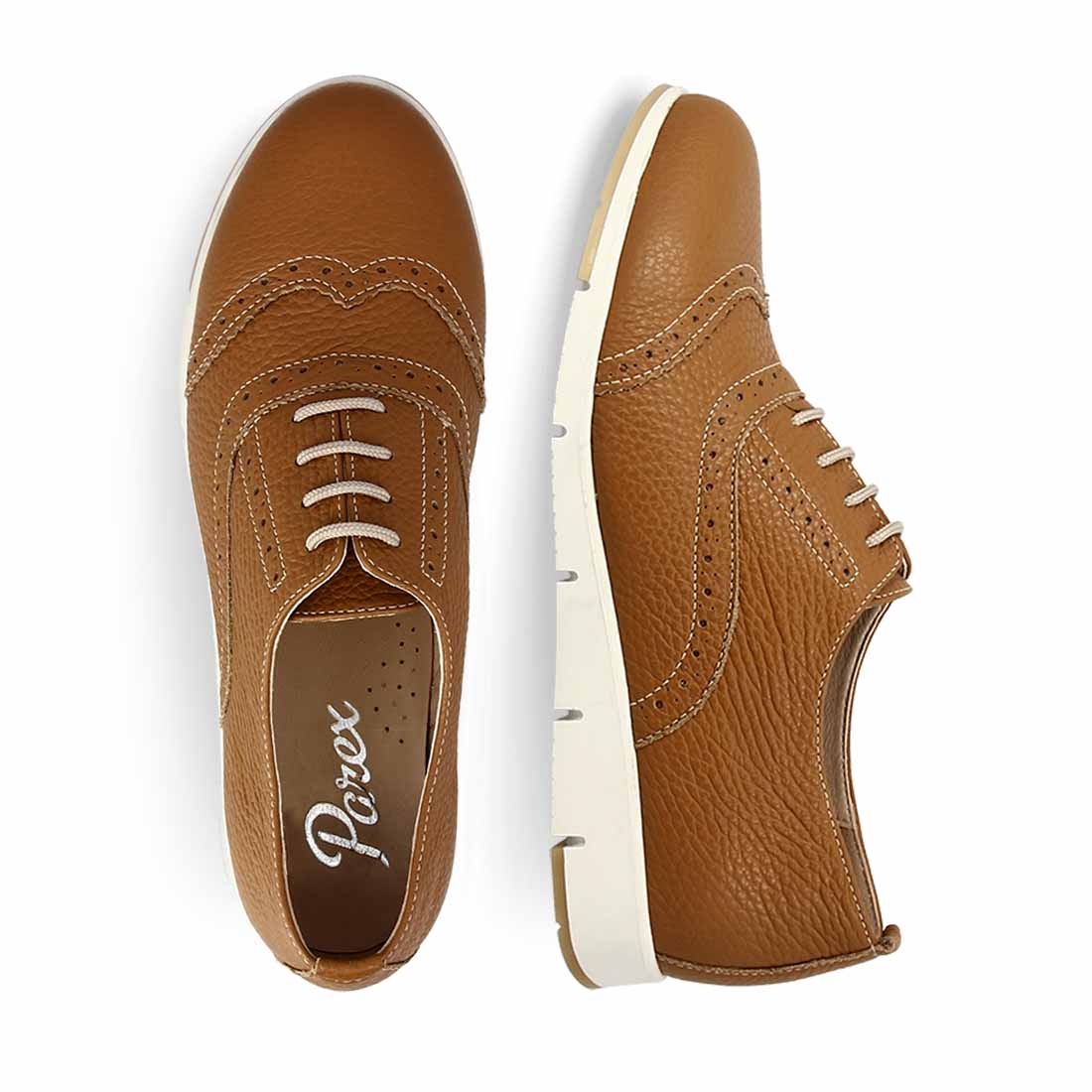 Γυναικεία Oxford παπούτσια Parex. Διαθέτουν κορδόνια για καλύτερη εφαρμογή. Έχουν διακρητική θηλιά στο πίσω μέρος για εύκολη εφαρμογή. Λευκή, τρακτερωτή σόλα που δεν γλιστράει. Κατασκευάζονται στην Ελλάδα.