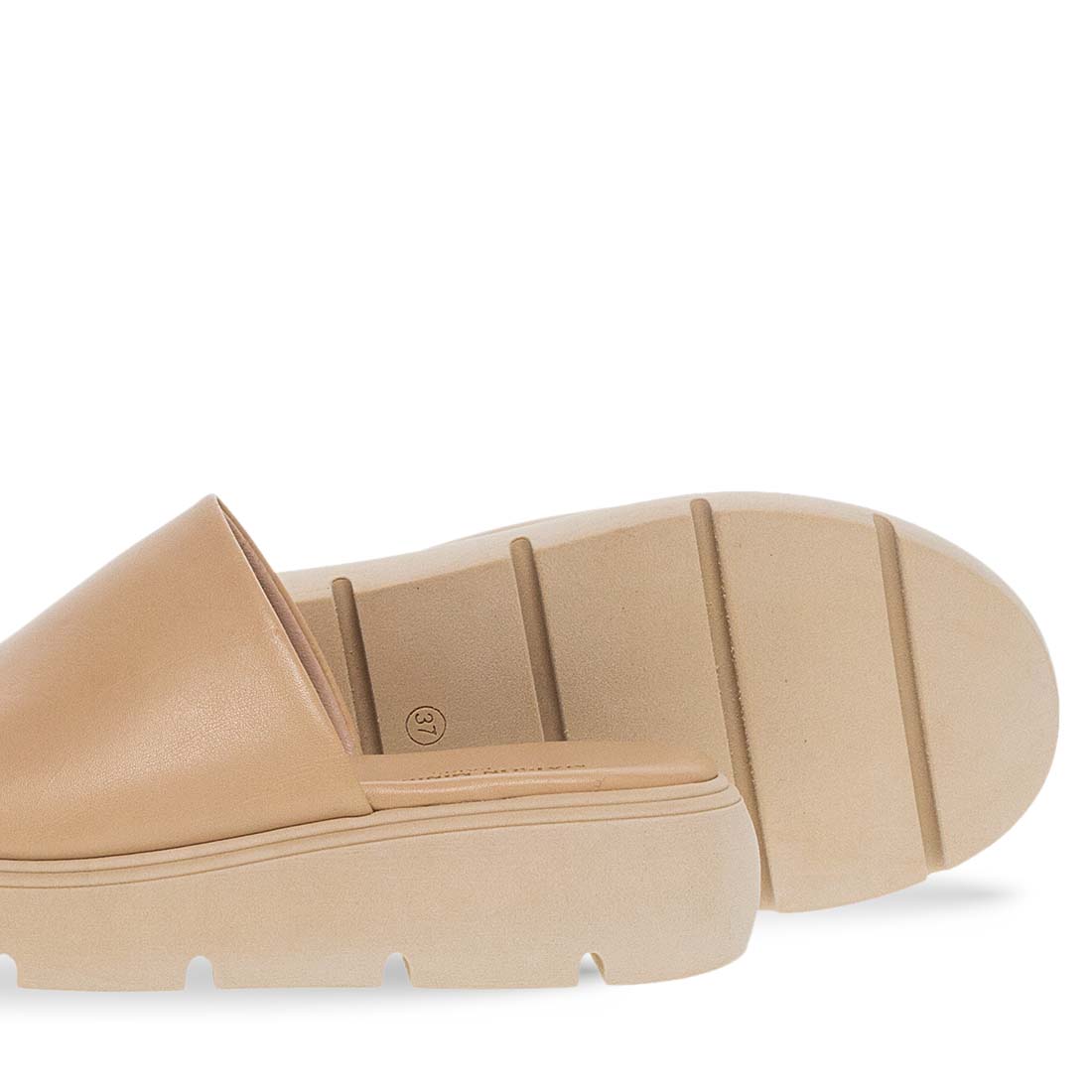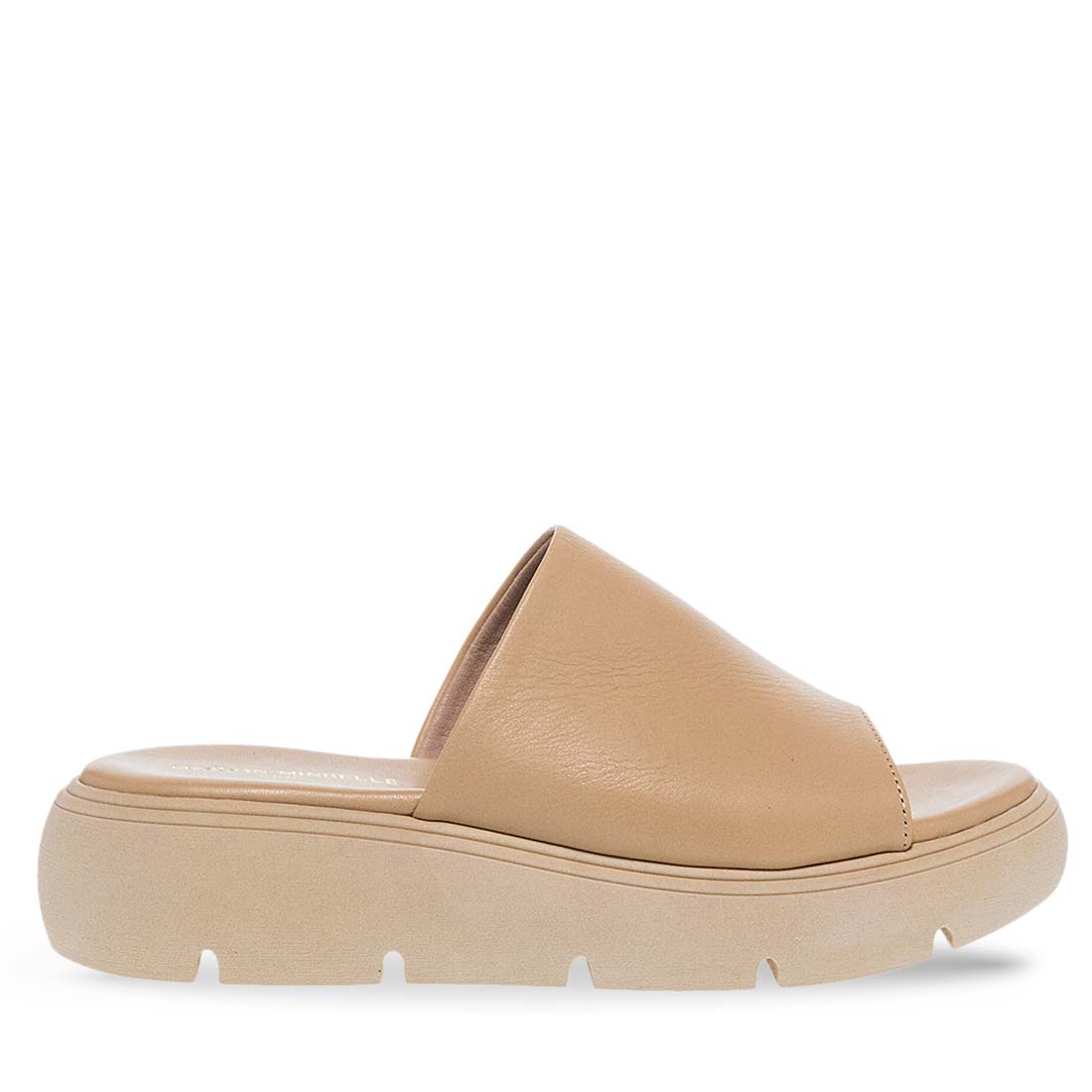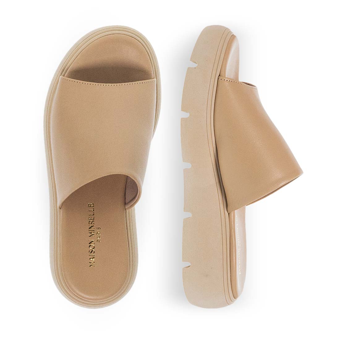 Δερμάτινες παντόφλες Maison Minrelle με φαρδιά φάσα. Oι συγκεκριμένες επώνυμες καλοκαιρινές παντόφλες έχουν πολύ μαλακό πάτημα για να διατηρούν ξεκούραστα τα πόδια σας. Με έυκαμπτη και σταθερή σόλα. Είναι οι ιδανικές παντόφλες για να φορεθούν για περπάτημα αλλά και για τη δύσκολη καθημερινότητά σας. Συνδυάστε τες με αέρινα καλοκαιρινά φορέματα και αναβαθμίστε το look σας.