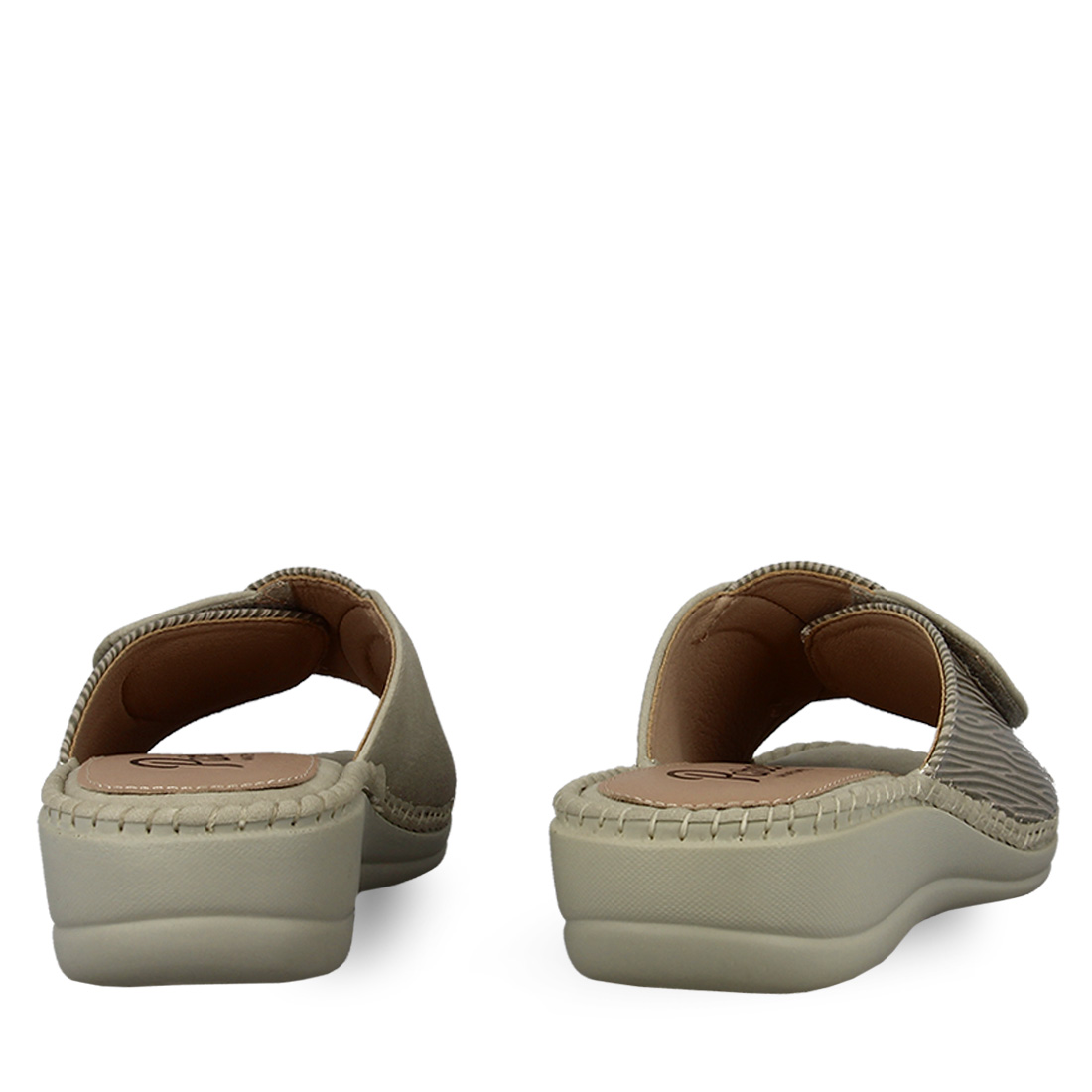 Άνετες γυναικείες παντόφλες comfort με αυτοκόλλητη φάσα. Οι συγκεκριμένες comfort παντόφλες έχουν εξαιρετικά μαλακό πάτο.Ένα σχέδιο με δερμάτινο εσωτερικό πάτο και έυκολη εφαρμογή.
